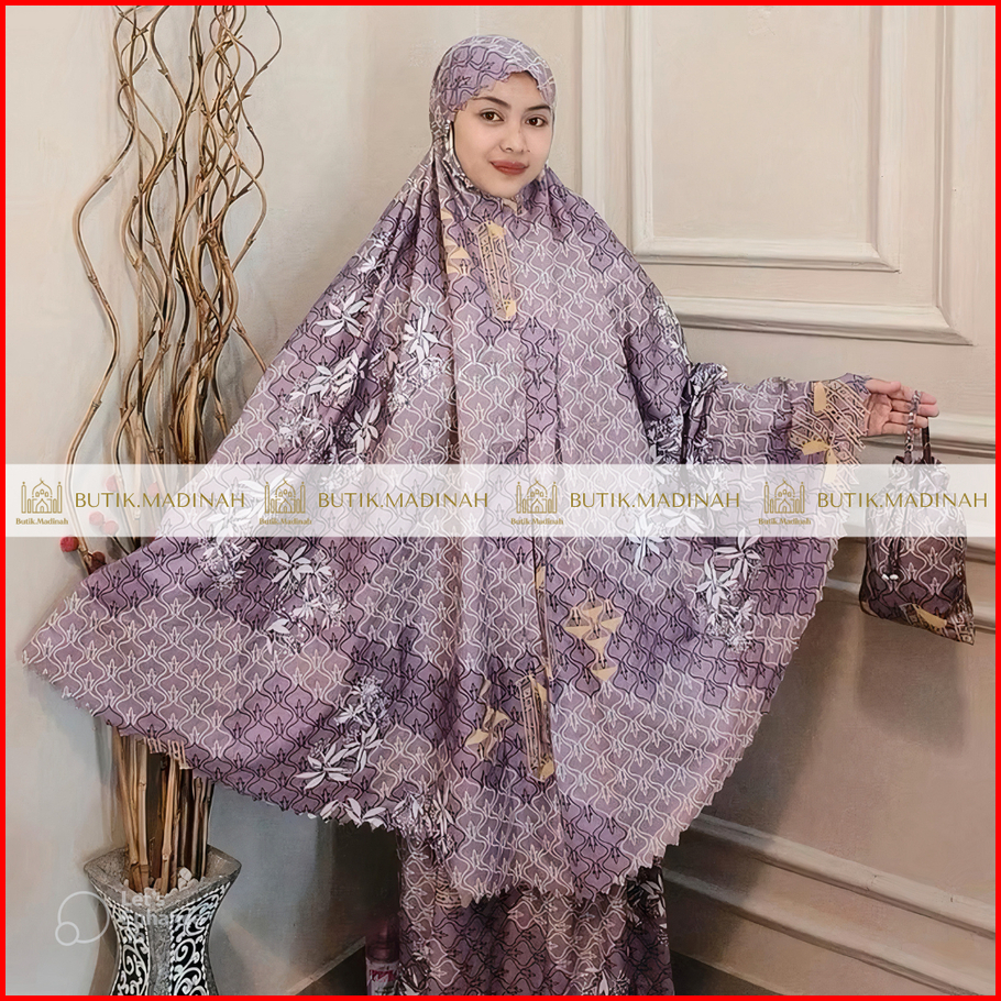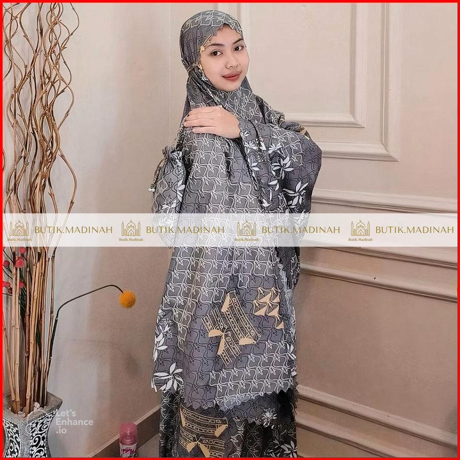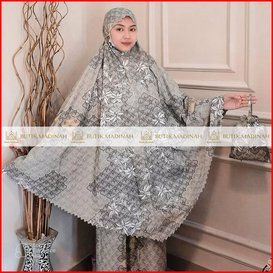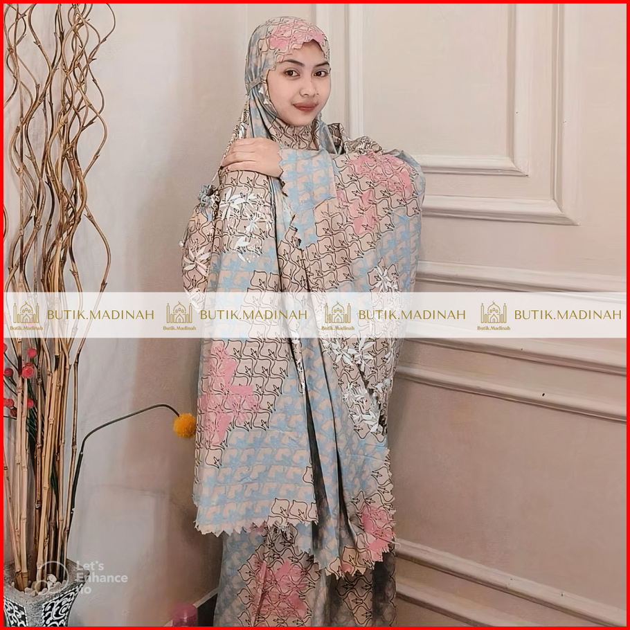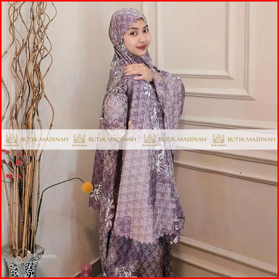 Butik.madinah Mukena Dewasa Aliza Travelling 2in1 Laser Cut Katun Mikro Motif Premium