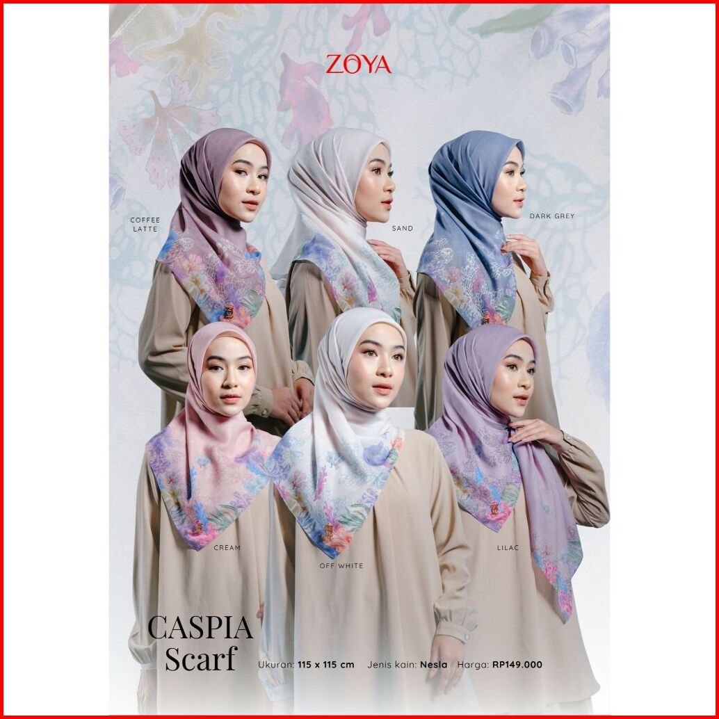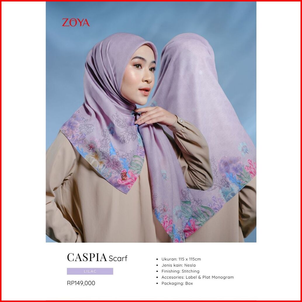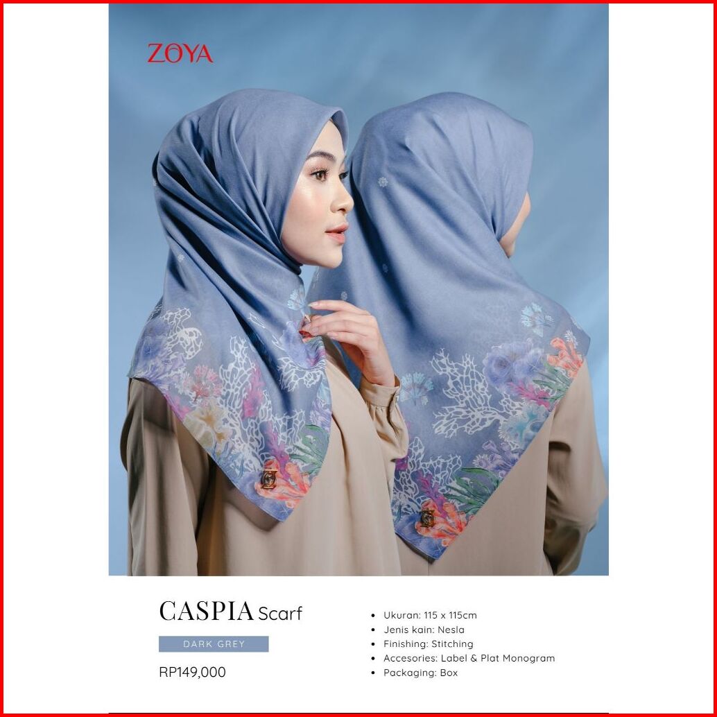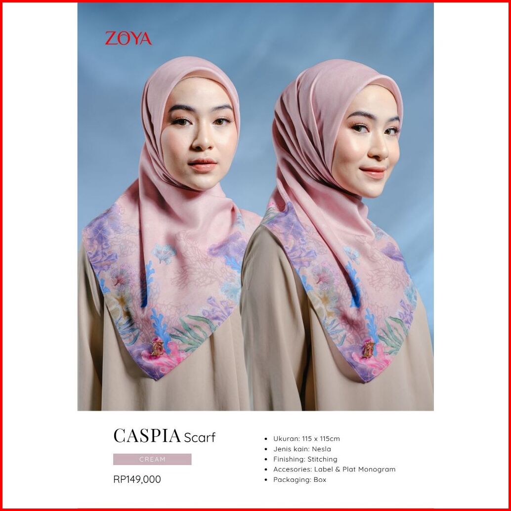 Zoya Caspia Scarf - Kerudung Hijab Segiempat Motif With Box - Bahan Nesla - Ukuran 115x115
