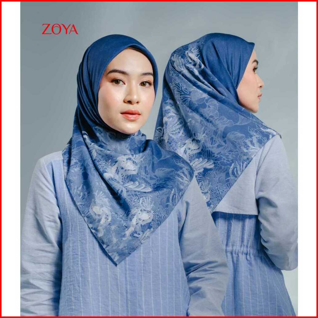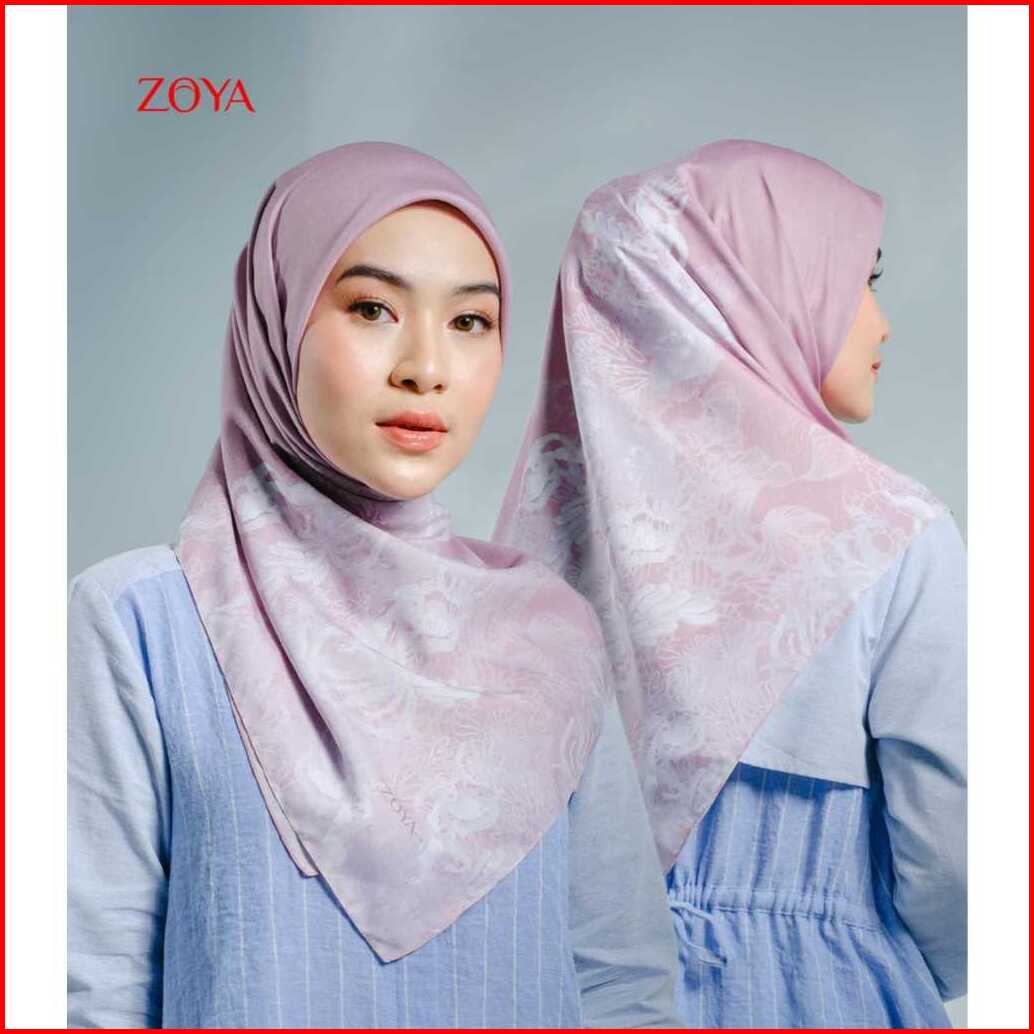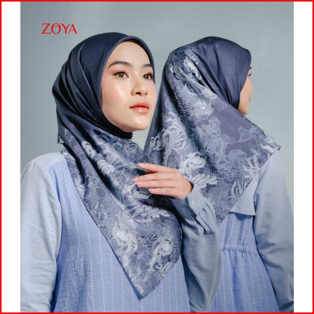 Zoya Amami Scarf - Kerudung Hijab Segiempat Motif With Pouch Ziplock - Bahan Poly Fine - Ukuran 110x110