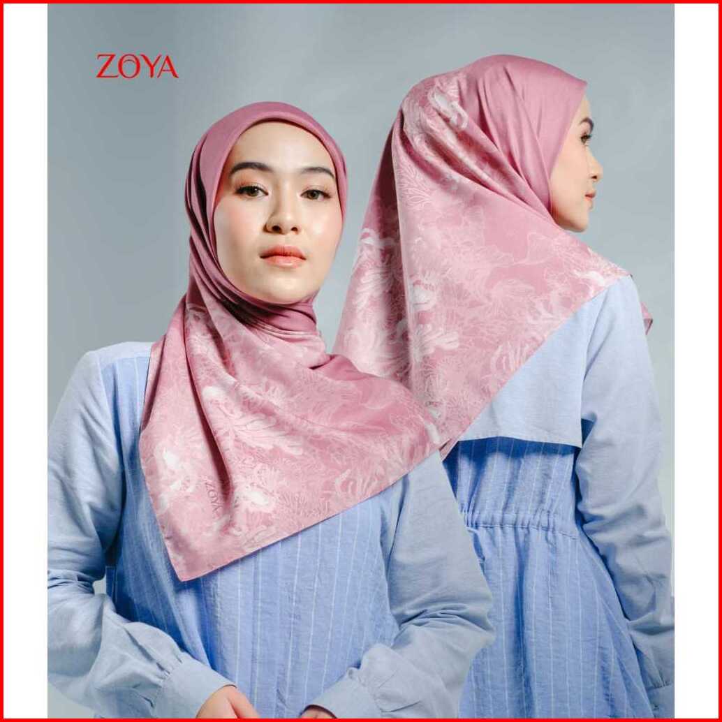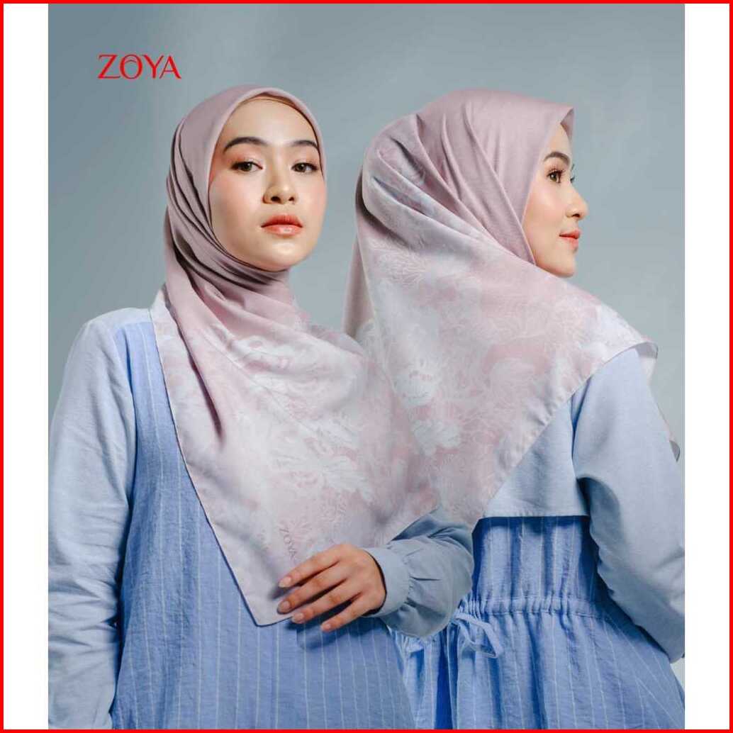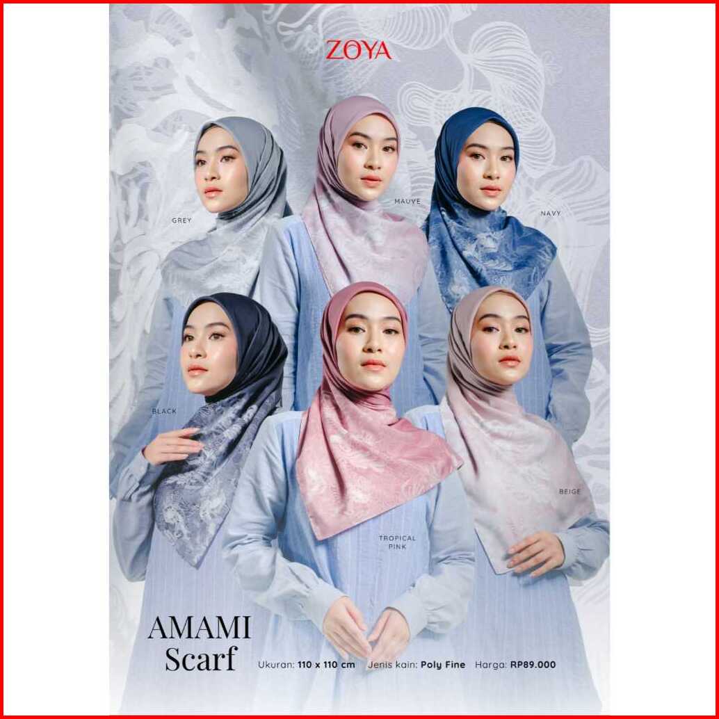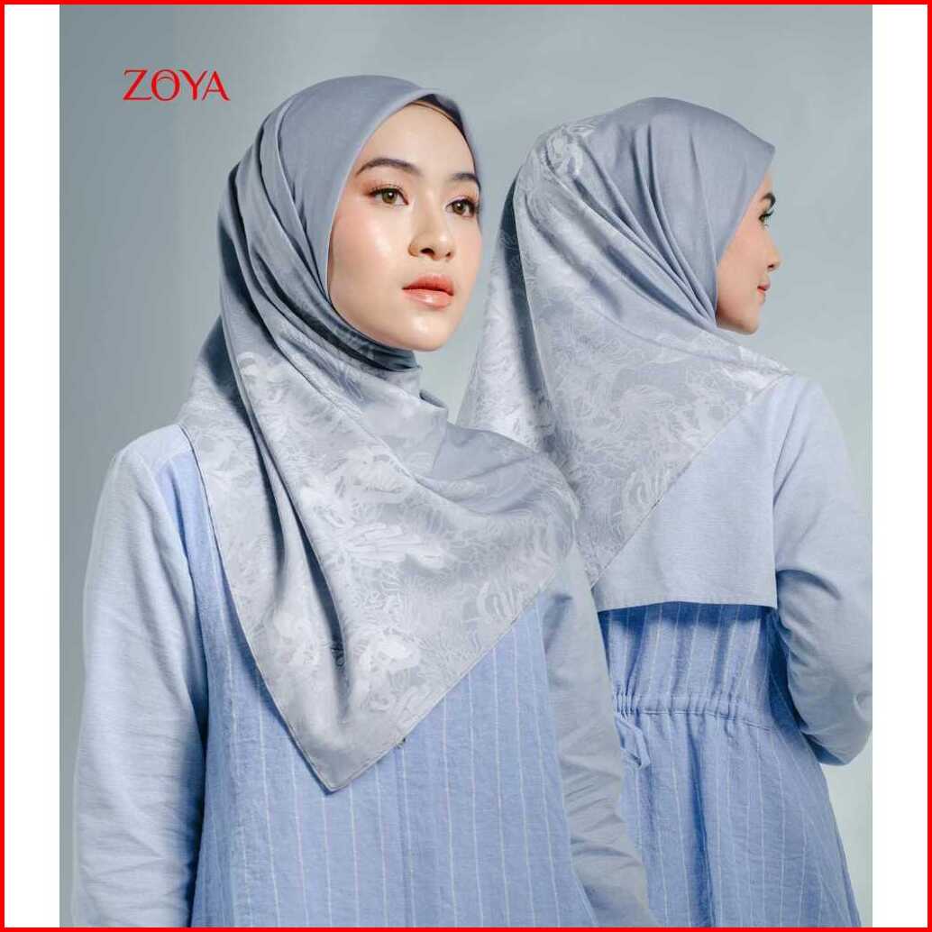 Zoya Amami Scarf - Kerudung Hijab Segiempat Motif With Pouch Ziplock - Bahan Poly Fine - Ukuran 110x110