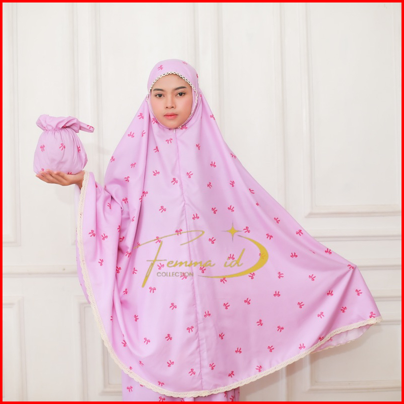 Mukena Dewasa Katun Mikro 2in1 Motif Pita Terbaru Renda Cantik