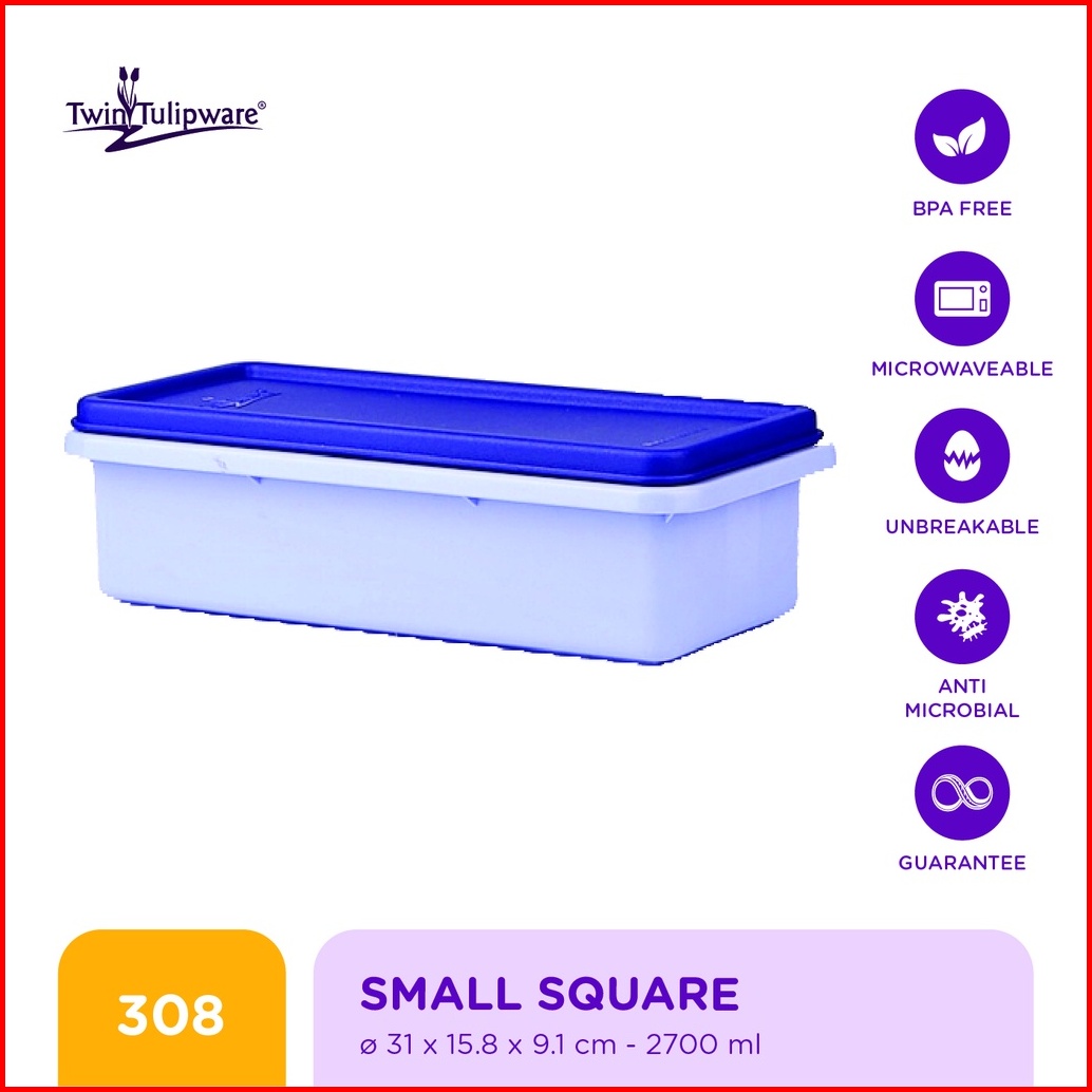 Twin Tulipware Small Square Wadah Makanan 2700 Ml