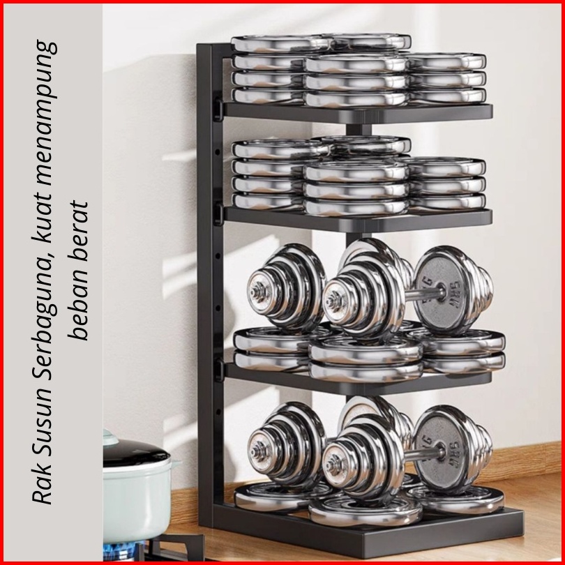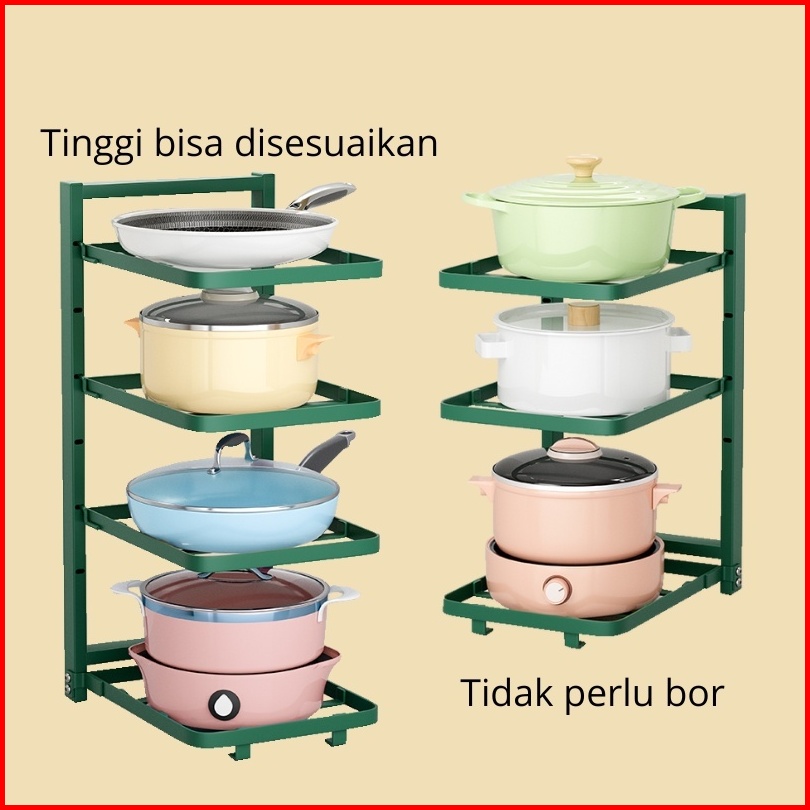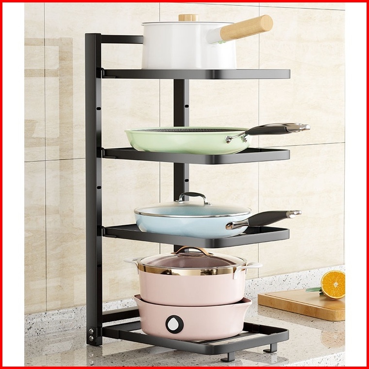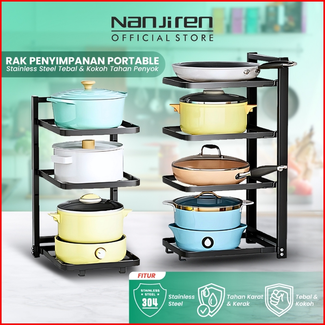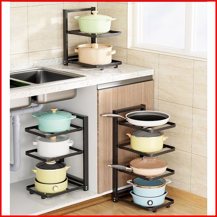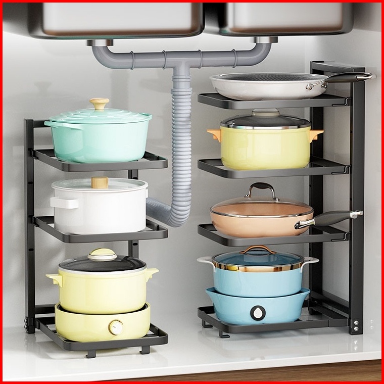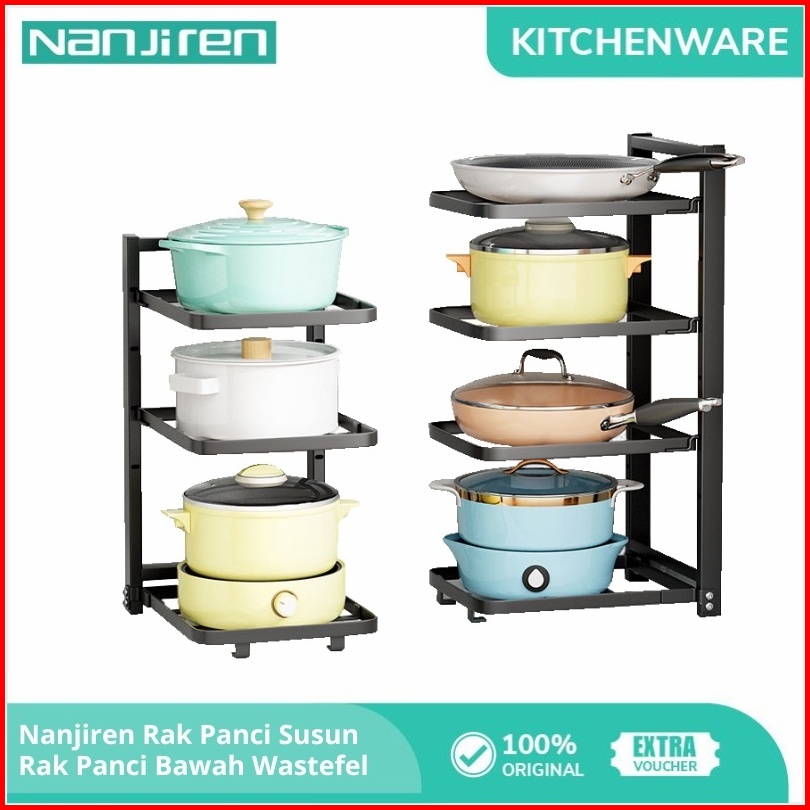 Nanjiren Rak Penyimpanan Pot Pan Makanan Dapur Susun Piring Panci Wastafel Minimalis Hitam Putih