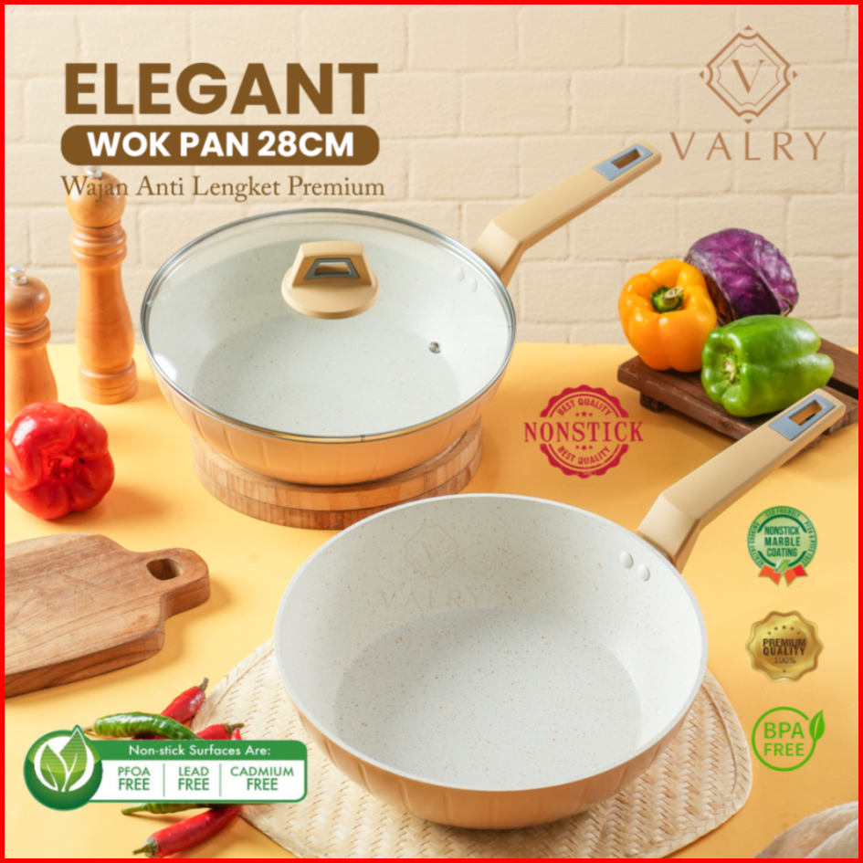 Mayba Wok Pan 28 Cm Elegant Valry Panci Penggorengan Marble Putih Anti Lengket Ap6428