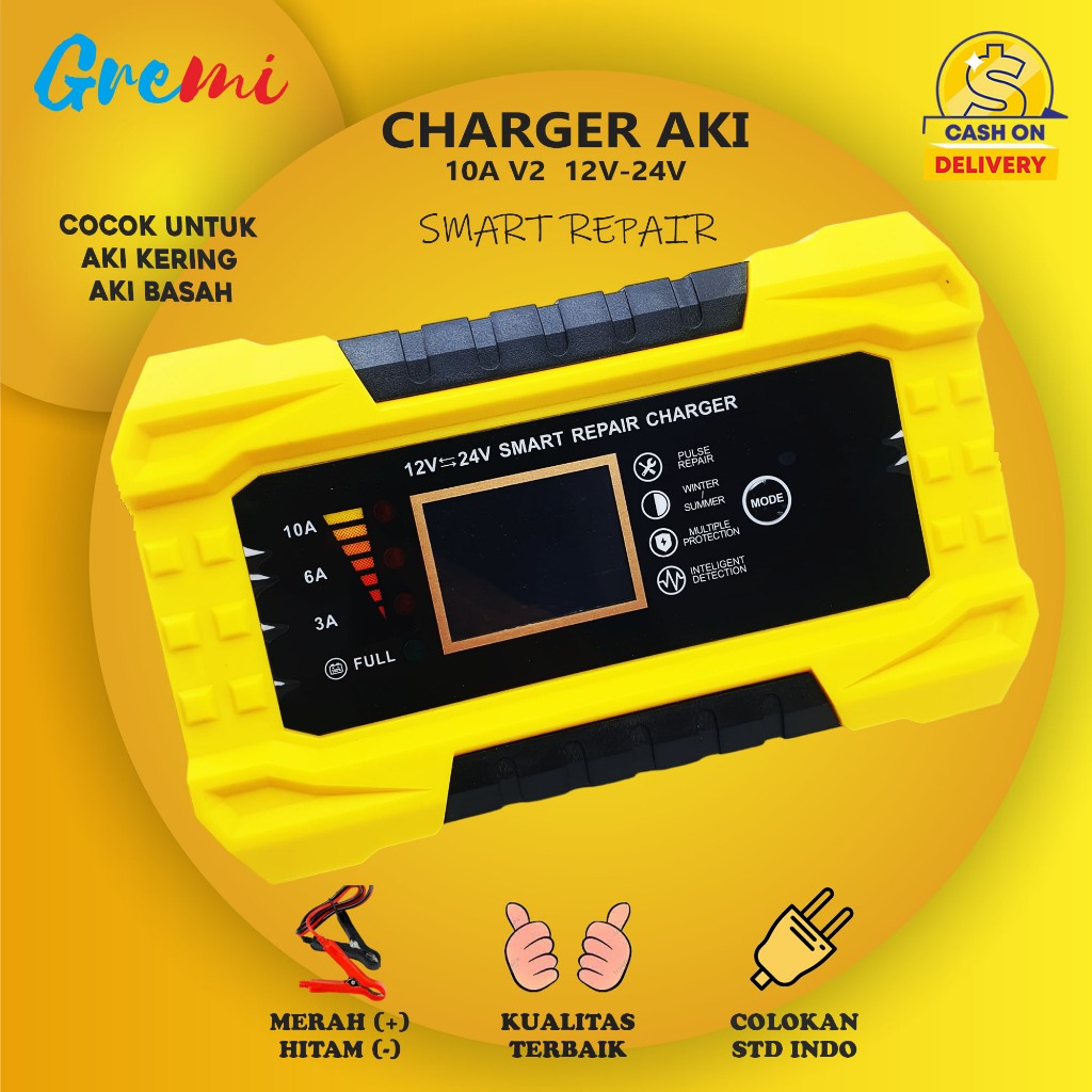 Charger Aki Portable 10A 12V 24V Casan Accu Motor Mobil Sparepart Motor Listrik Indikator Carger