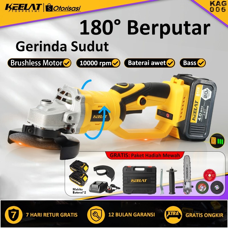 【KEELAT-KAG006】180° Rotatable Brushless Angle Grinders Mesin Gerinda Cordless 3 Gears Variable Cutting Grinding Polishin