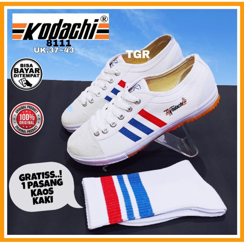 Kodachi 8111 Original Sepatu Kodaci Capung Pria Size 37 s/d 43 Murah Free Kaos kaki - Putih