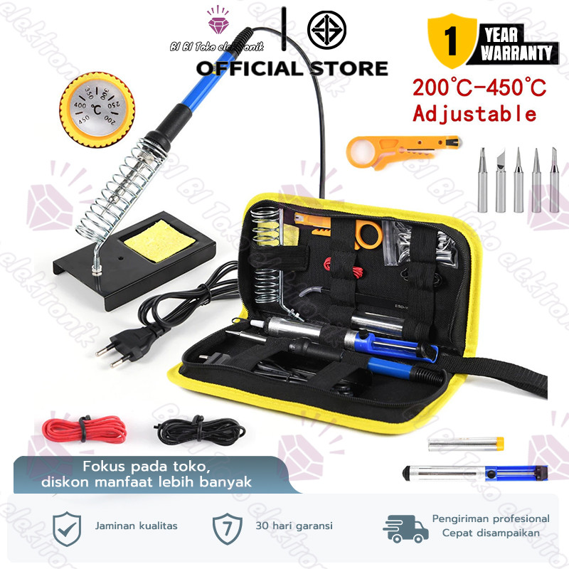 BIBI Set Solder Listrik Lengkap Dengan Multimeter Iron Tool Kit 220V 60W Set Besi Elektronik Kit Besi Elektronik 200-450