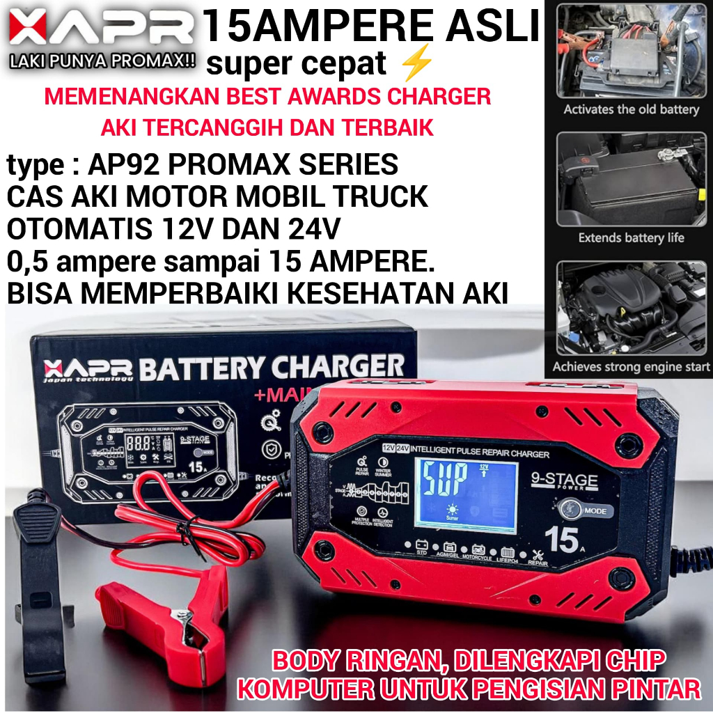 PROMO VARIAN Apr charger aki super cepat 15A asli 12v 24v AP92 promax bisa semua untuk memperbaiki aki yang lemah atau r