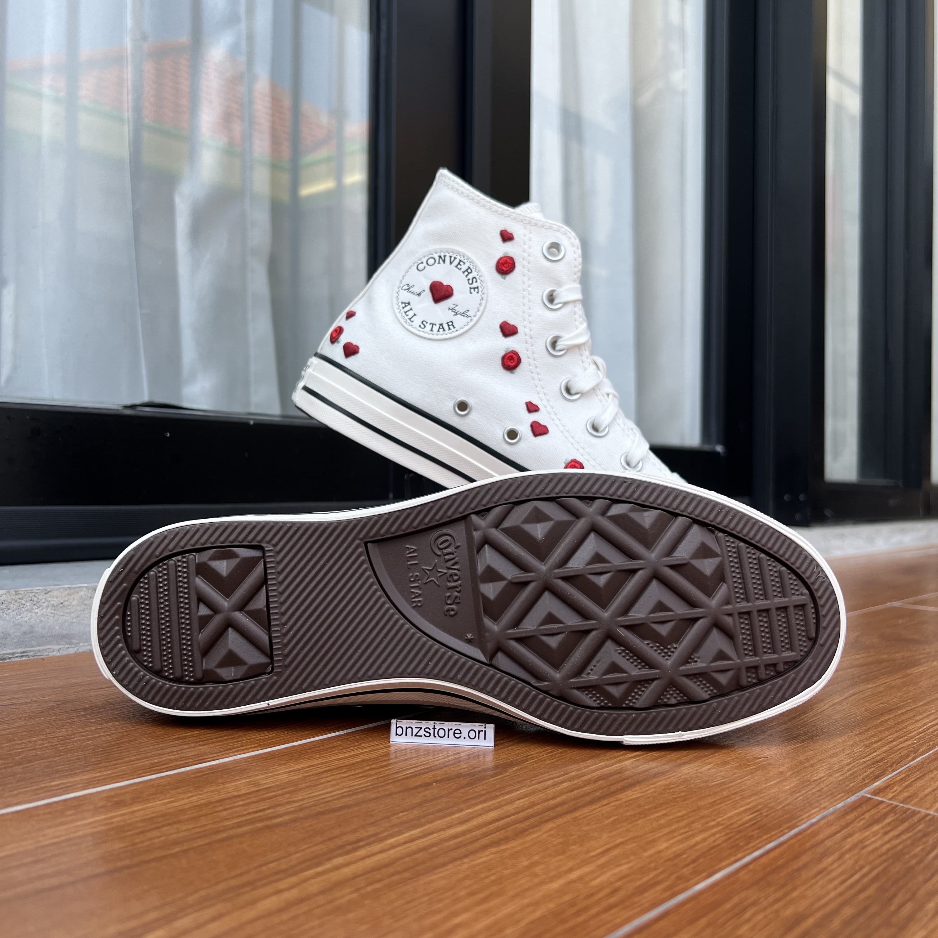 Sepatu Sneakers Wanita Converse CTAS Hi Vintage White/Red