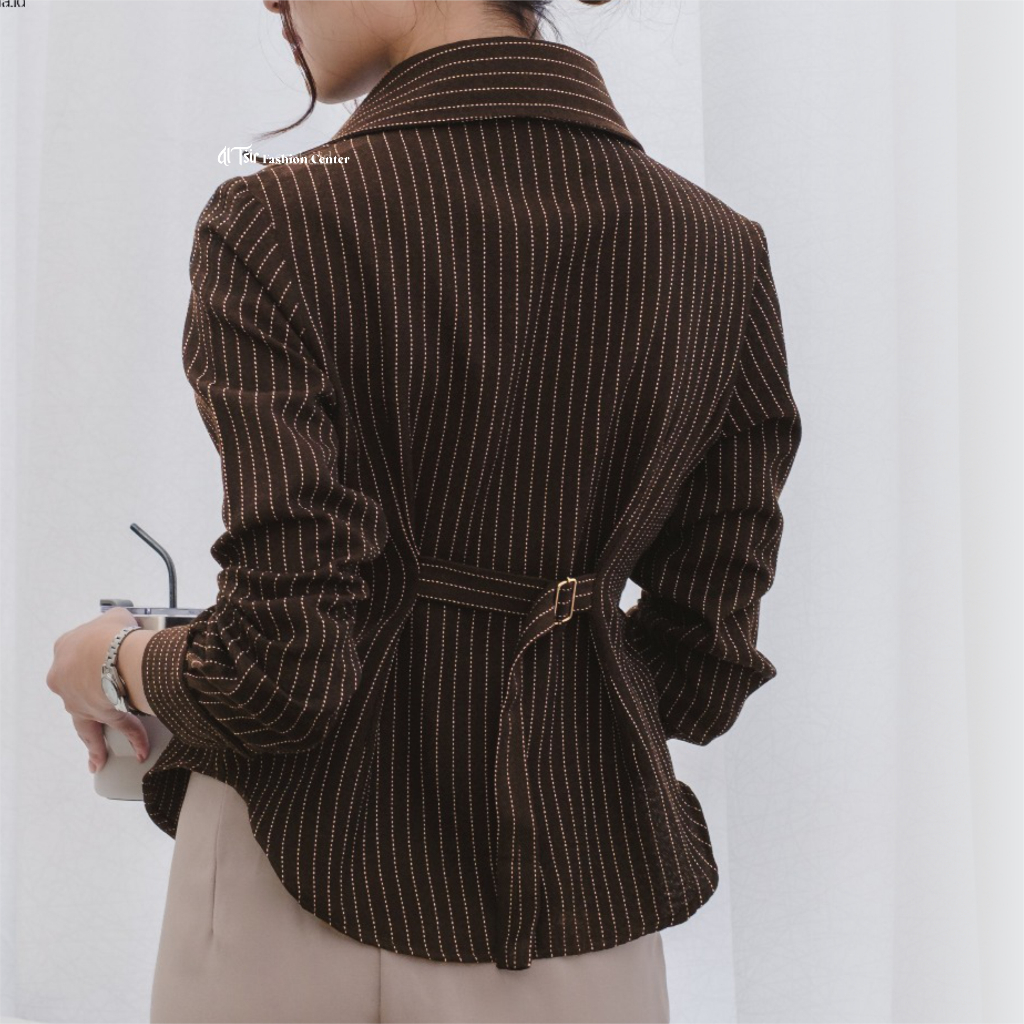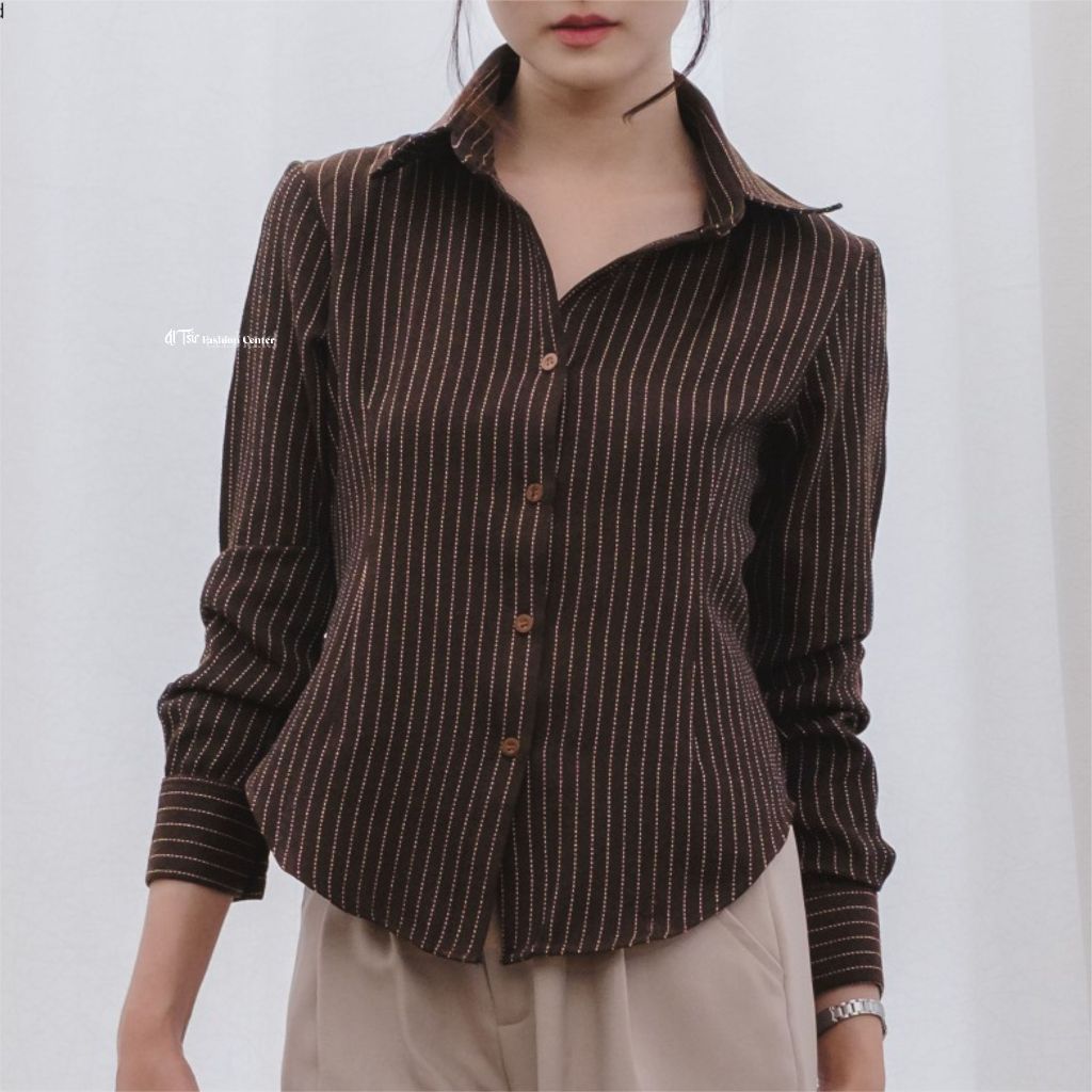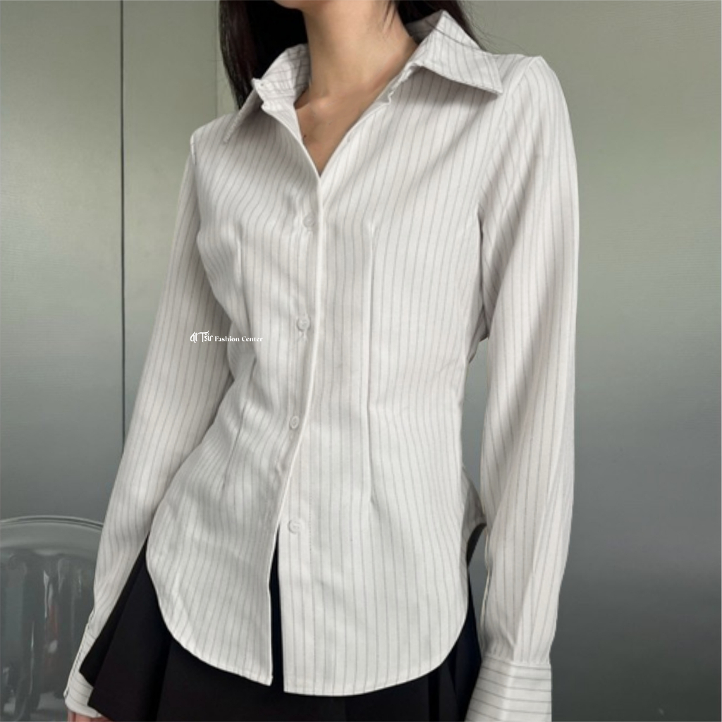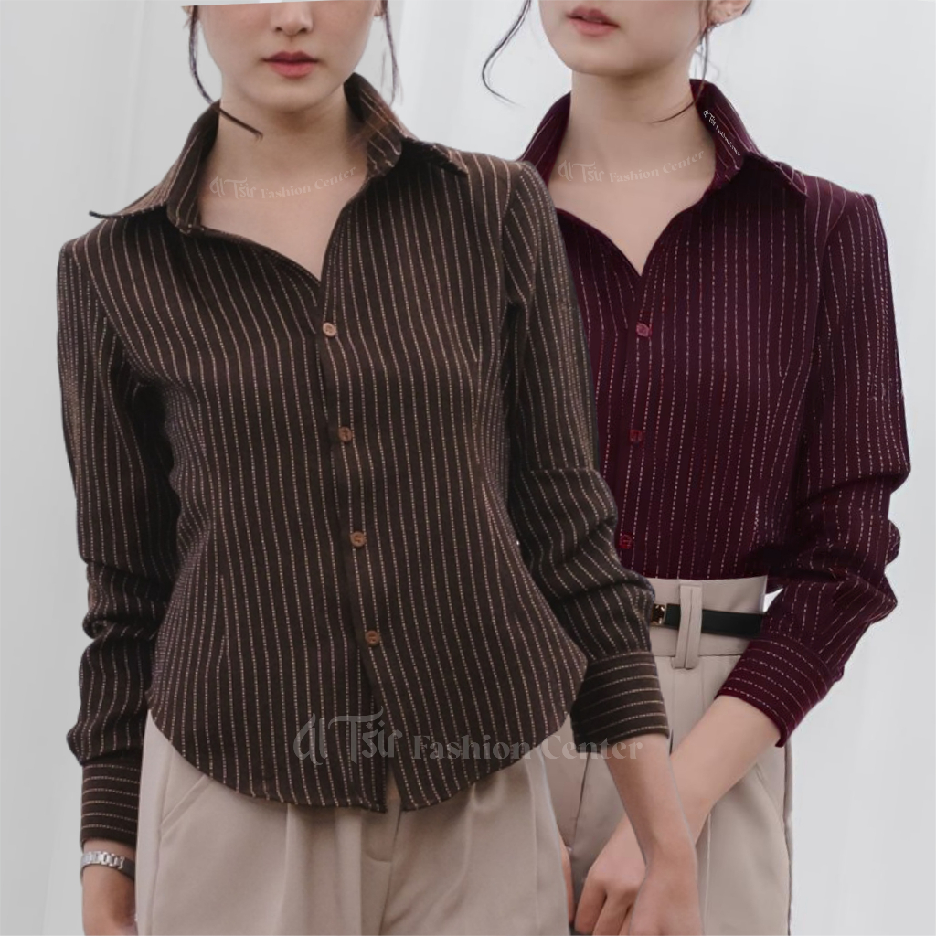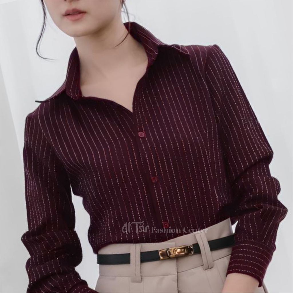 Kemeja Luna Strip Fitted - Atasan Strip Wanita Formal Lengan Panjang Kekinian