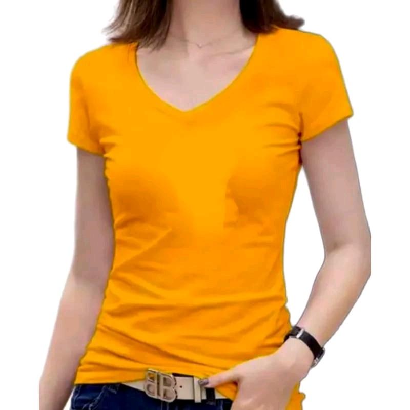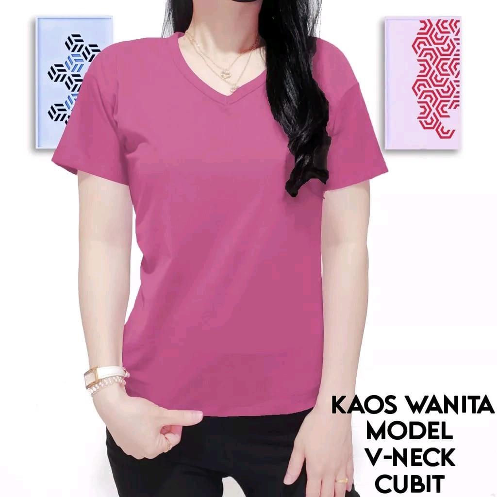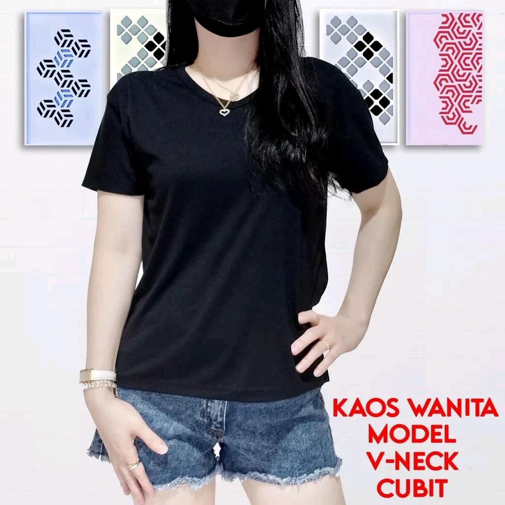 Paket Usaha Isi 6pcs. Kaos Polos Atasan Wanita Remaja Leher V-Neck. Baju Slim-fitting
