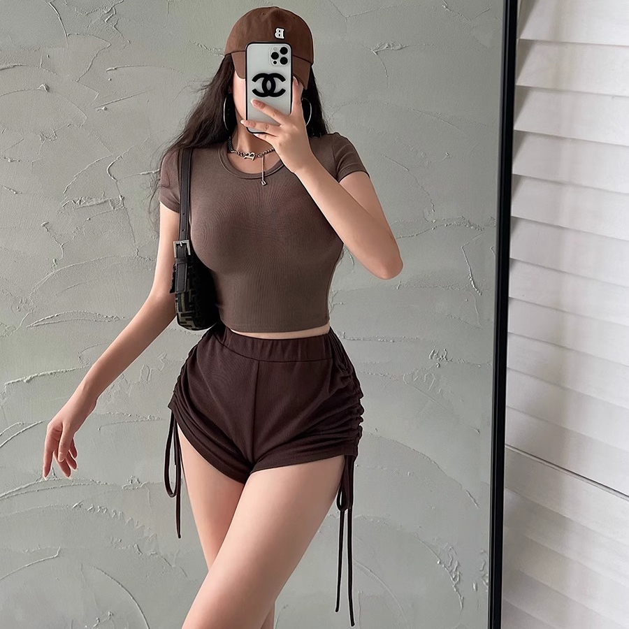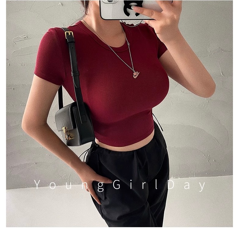 [premium] kaos top crop polos Basic Seksi Wanita Import Korea / kaos rib pendek merah berbahan katun/baju crop top wanita