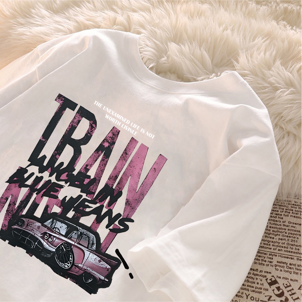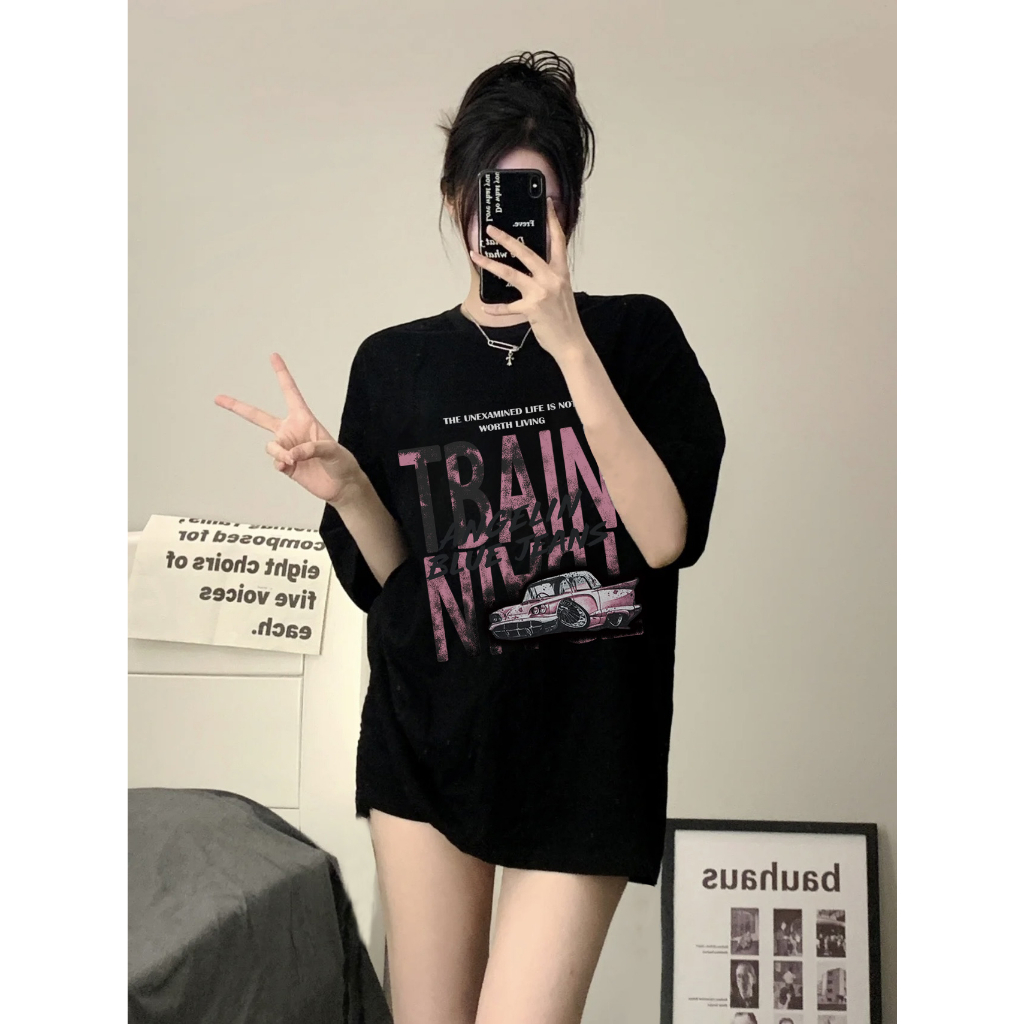 oversize Tshirt lengan pendek Kaos retro car train katun murni korean baju style wanita top