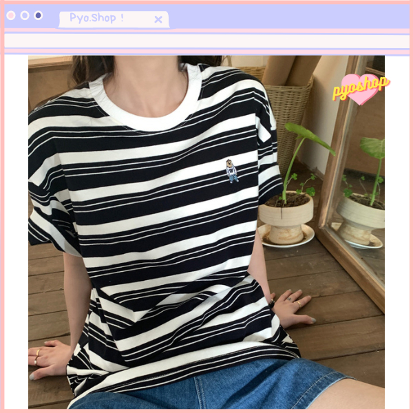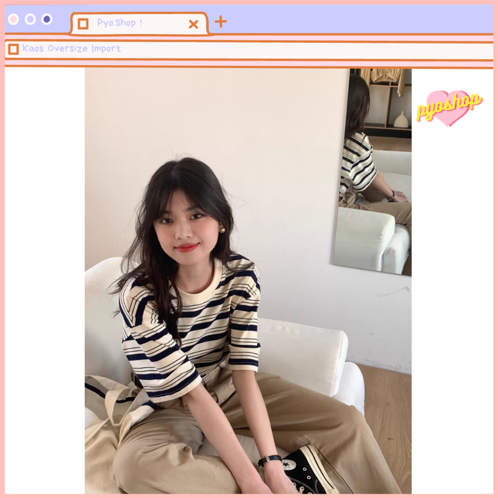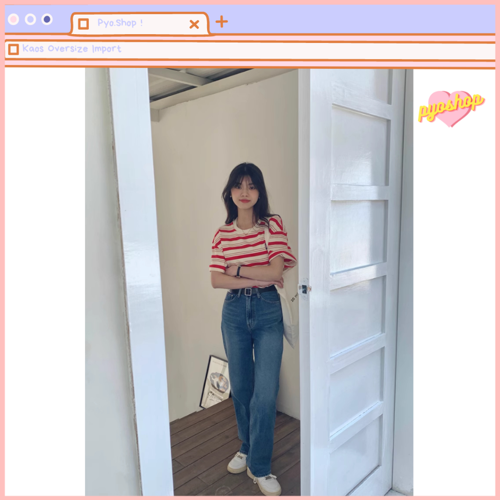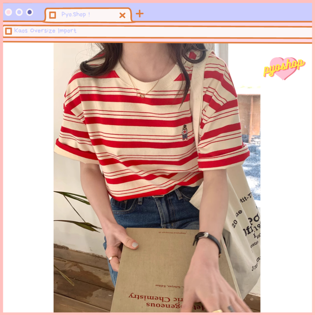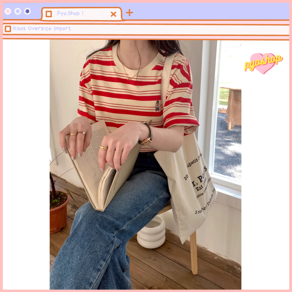 Kaos Stripe Oversized Import Wanita Bordir Korean