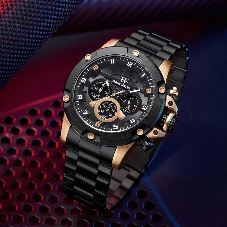 [ PROMO SAAT LIVE ] Evans Jayden Jam Tangan Pria 9838 Rantai Stainless Kaca Safir Tahan air 10ATM