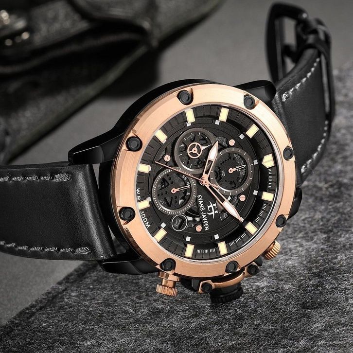 [ PROMO SAAT LIVE ] Evans Jayden Jam Tangan Pria 9570 Kulit Kaca Sapphire Chrono Water Resistant 10 ATM