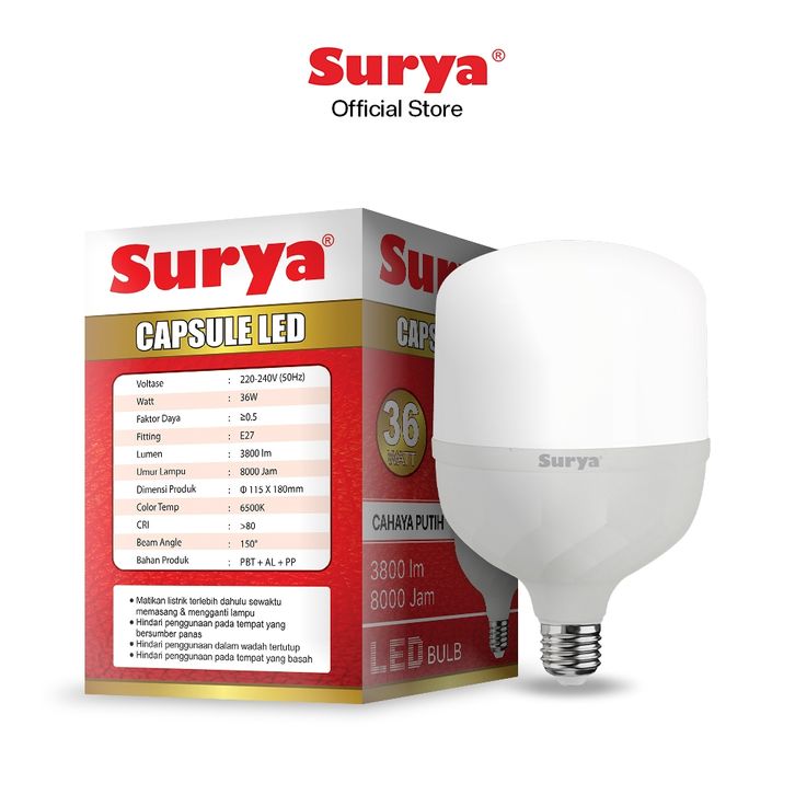 Surya Lampu Bohlam LED Capsule 36 Watt Cahaya Putih