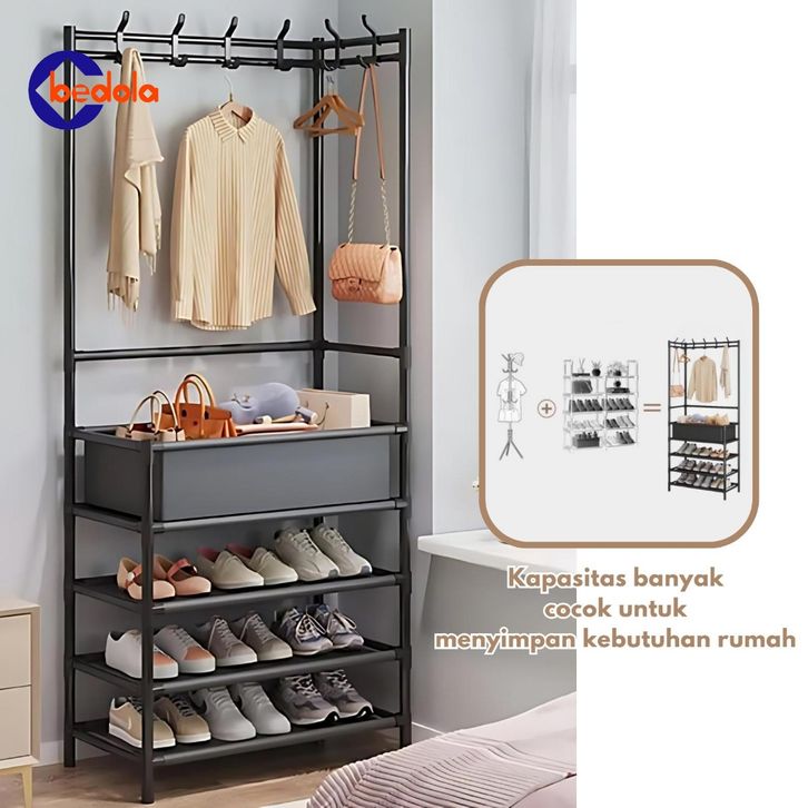 Bedola rak sepatu sudut tempat sendal mutifunsi rak hanger rak topi tas serbaguna