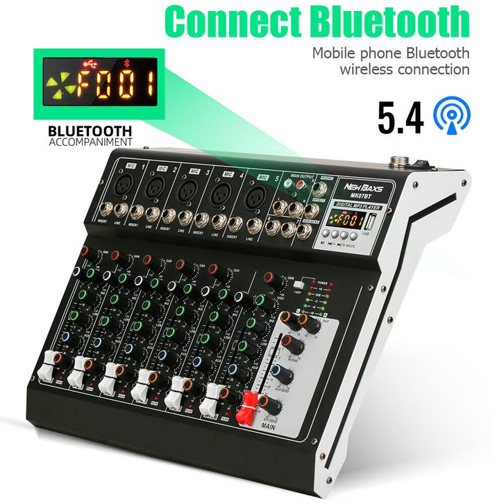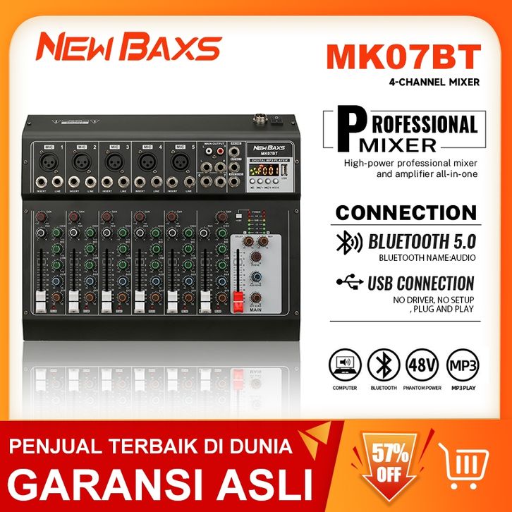 MK07BT Mixer audio with Equaliser Bluetooth 5.4 |MP3| Rekaman USB & Micro SD|Mixer audio 7 channel murah | KARAOKE