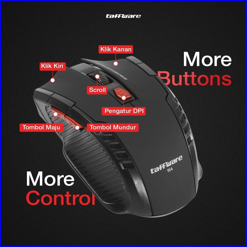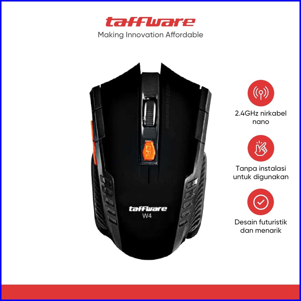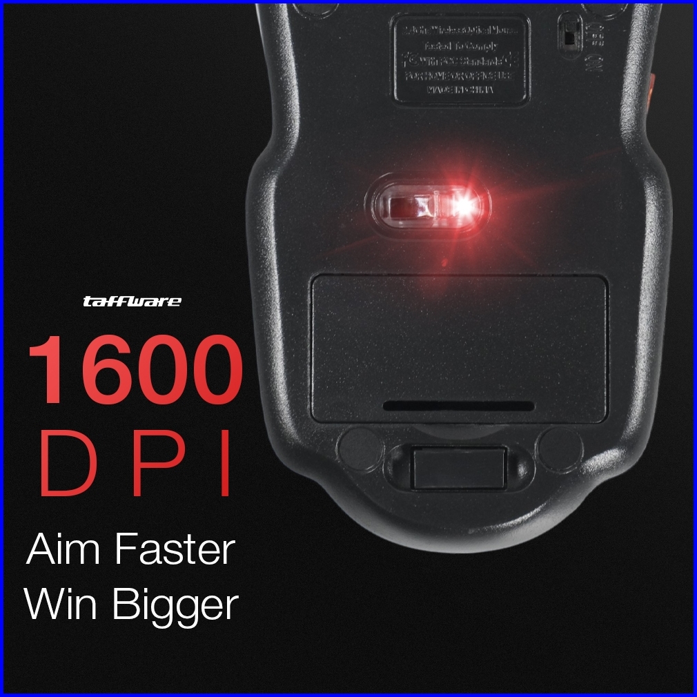 Taffware Mouse Gaming Wireless Optical 2.4ghz Ergonomic 1600dpi - W4