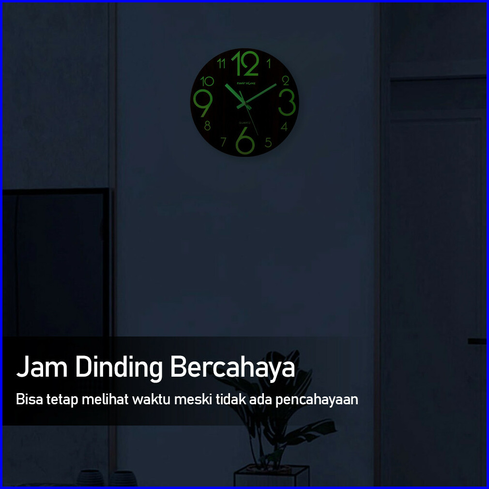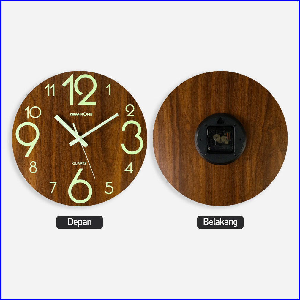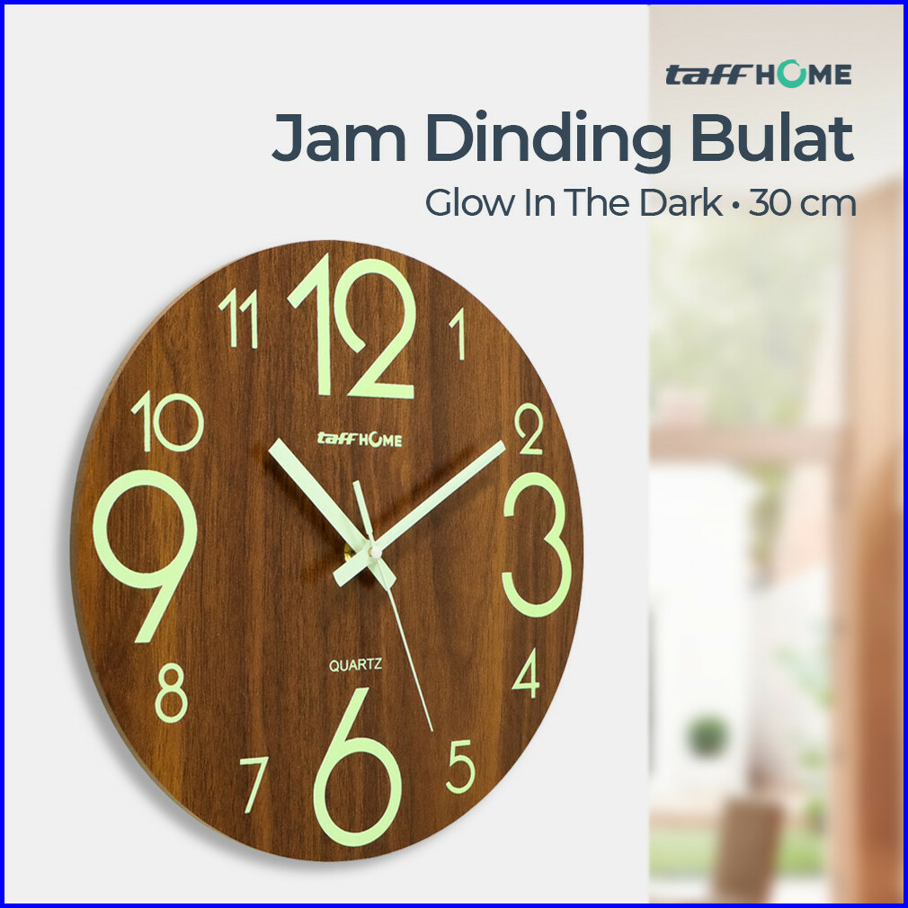 Taffhome Jam Dinding Bulat Quartz Luminous Glow In The Dark 30cm