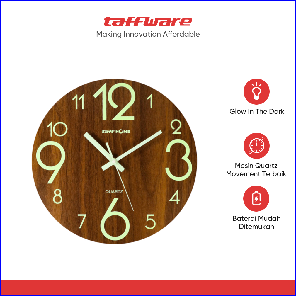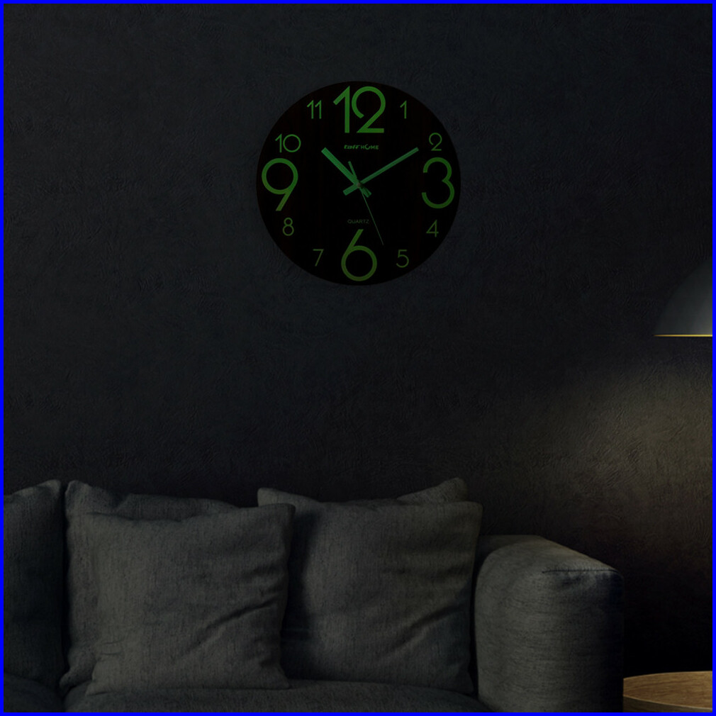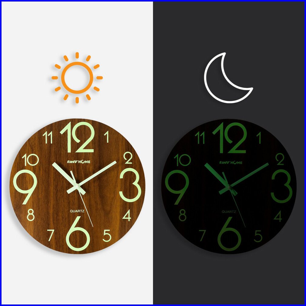 Taffhome Jam Dinding Bulat Quartz Luminous Glow In The Dark 30cm