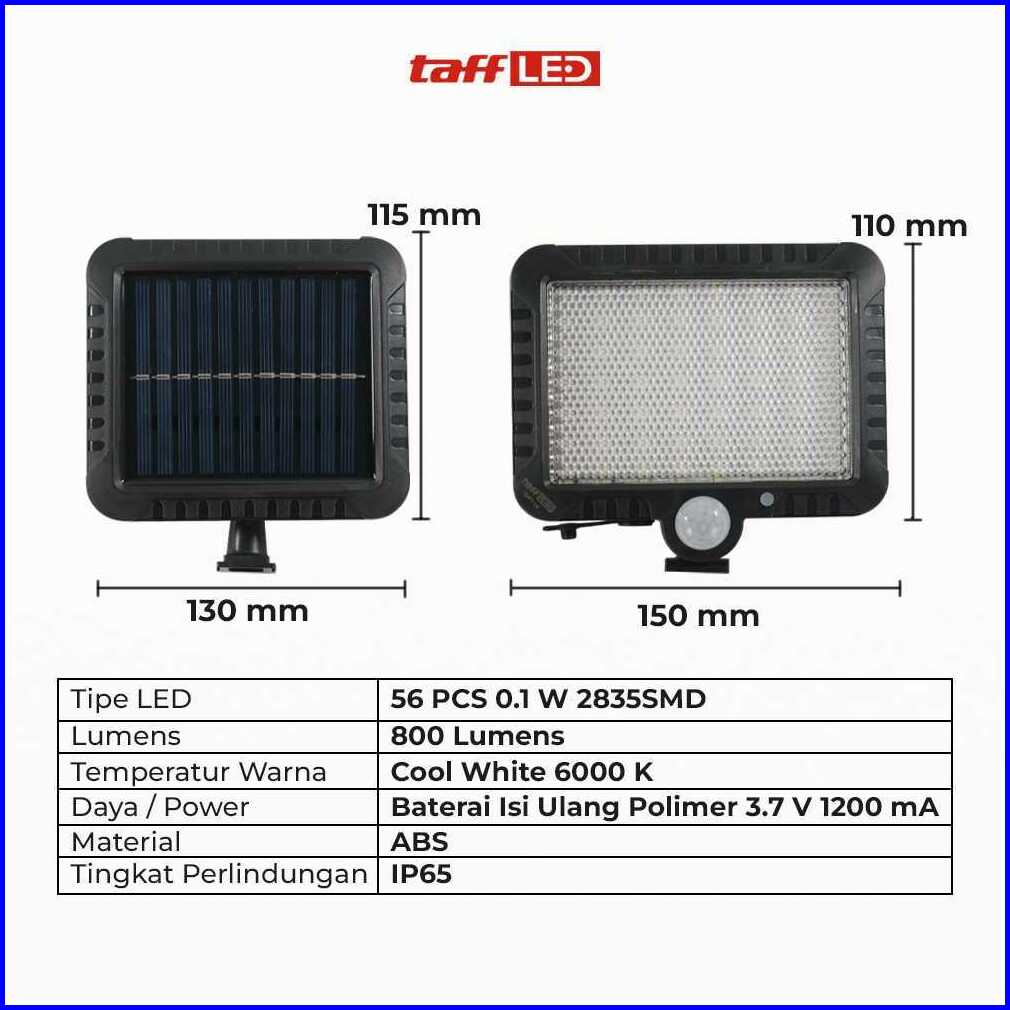 Taffled Lampu Taman Solar Panel Pir Motion Sensor 56 Led - Dpt18 - Black