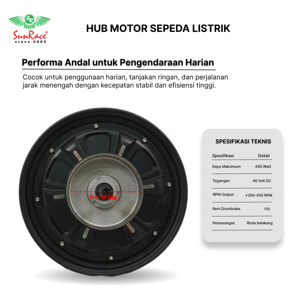 HUB MOTOR DINAMO RING 14" UNTUK SEPEDA LISTRIK 48V 350W PREMIUM UNIVERSAL SUNRACE