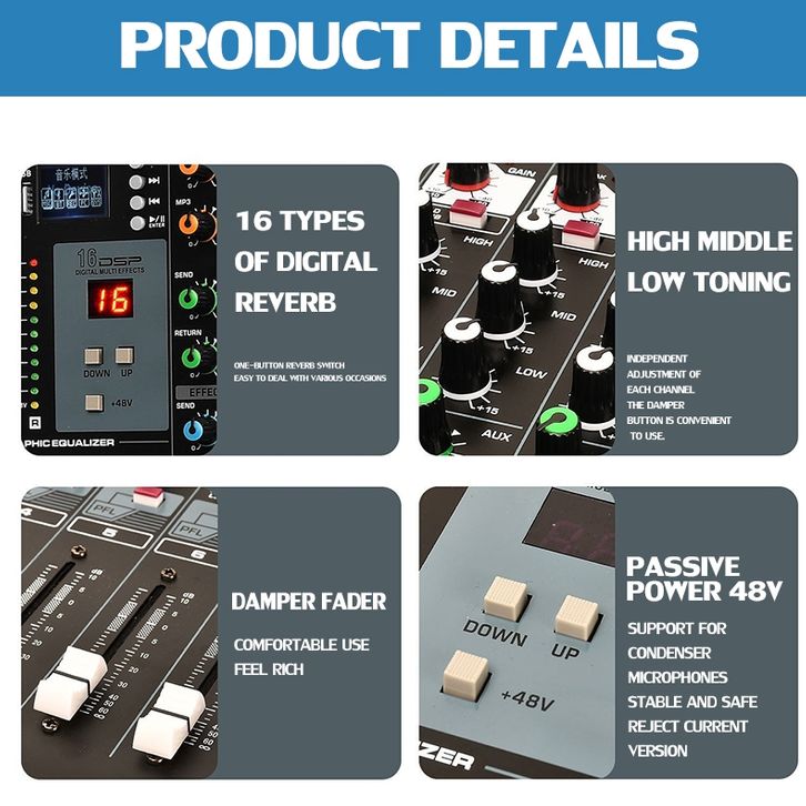 Mixer Audio Profesional GJS-8/GJS-8S 8 saluran dengan efek 16DSP bawaanPenguat daya 1800 watt 2 saluranDilengkapi