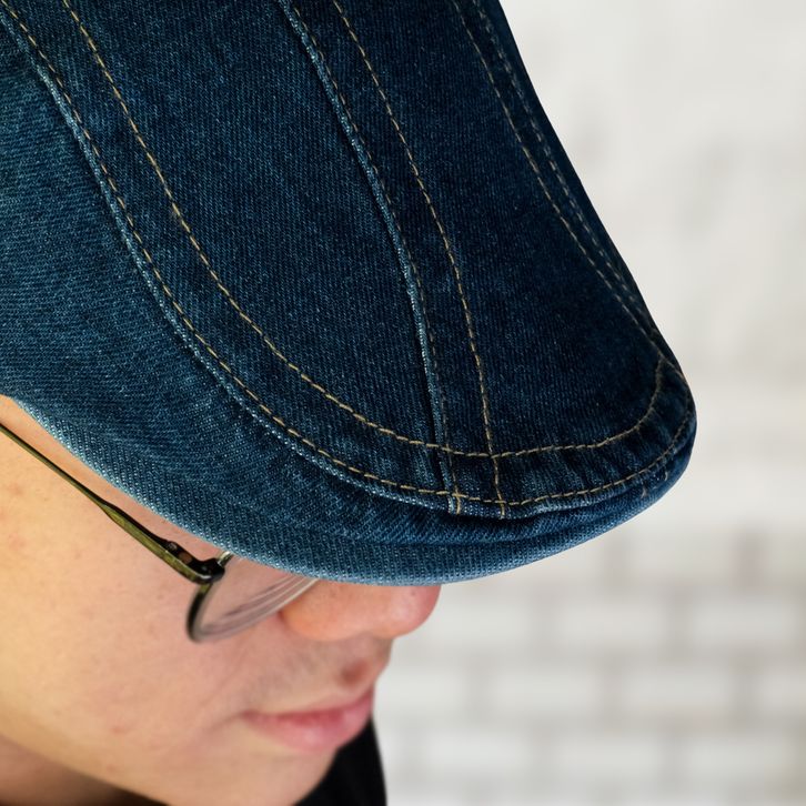 Gegedbako - Topi Pet Painter Hat Flat Cap Jeans Retro Katun - J-87 - Dark Blue