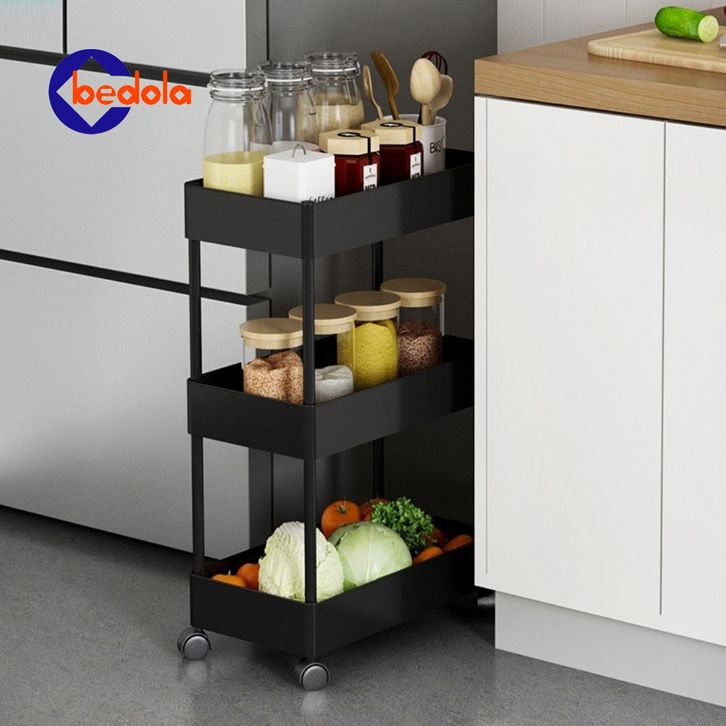 Bedola square rak dapur susun rak dorong serbaguna rak troli rak kamar mandi 3 tingkat dengan roda