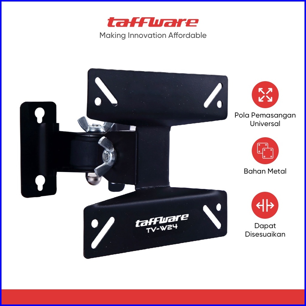 Taffware Tv Bracket Adjustable Up And Down 1.3mm Thick 100 X 100 Pitch For 14-24 Inch Tv - W24 - Black
