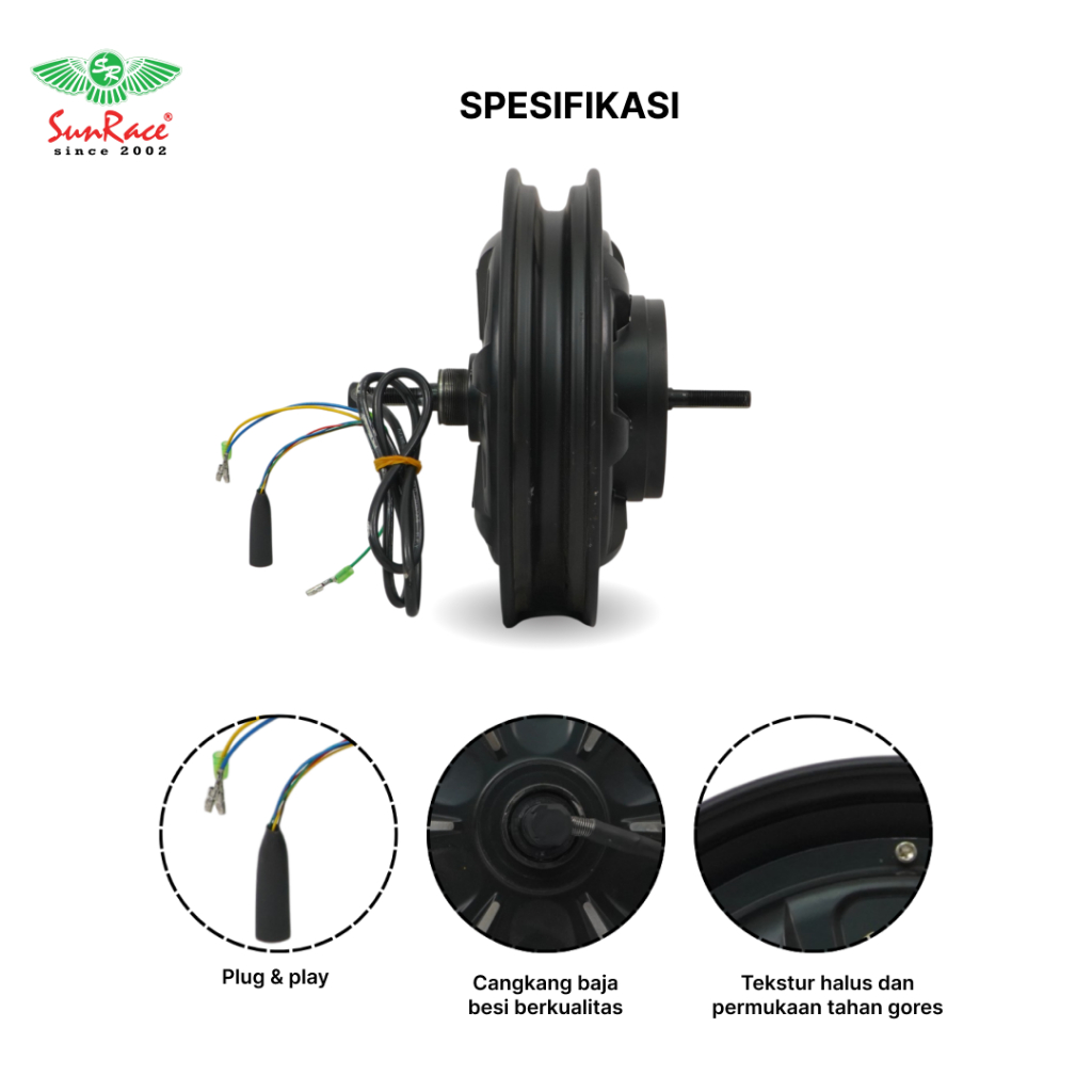 HUB MOTOR DINAMO RING 14" UNTUK SEPEDA LISTRIK 48V 350W PREMIUM UNIVERSAL SUNRACE