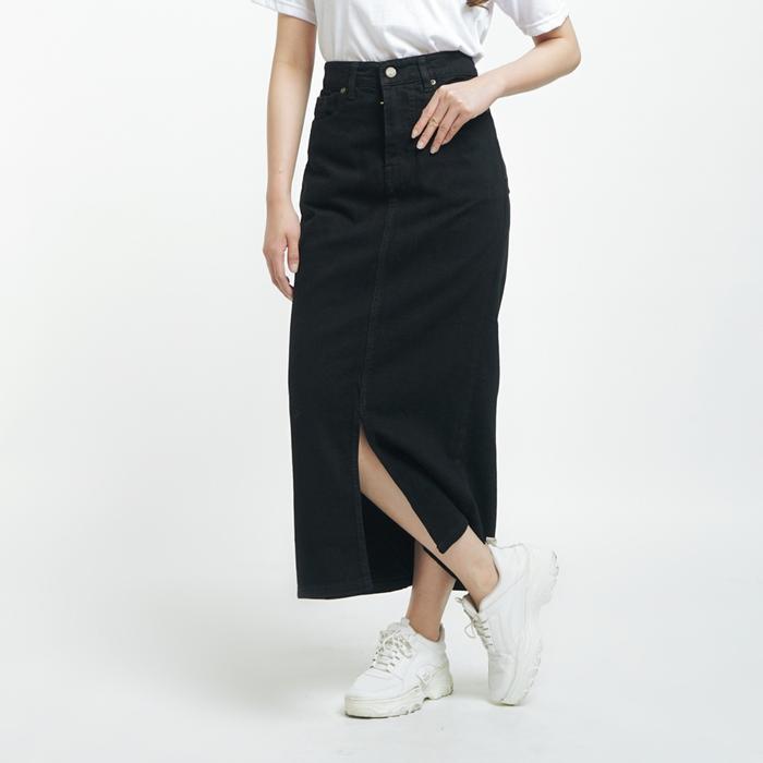 ESROCTE Rok Midi Denim skrit Mid Waist Panjang Jeans Wanita/Cewek P65 - Biru 26-38 001