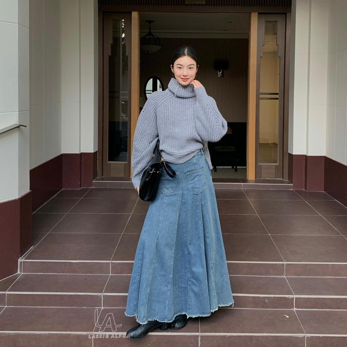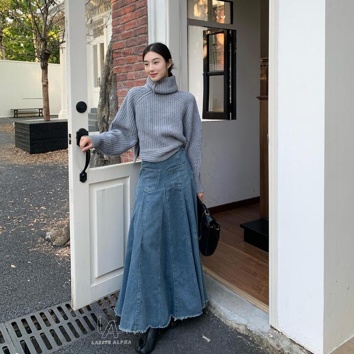 Lassie alpha J76 Ready Stok Rok Kulot Denim wanita HW Halus Lembut Hight Quality
