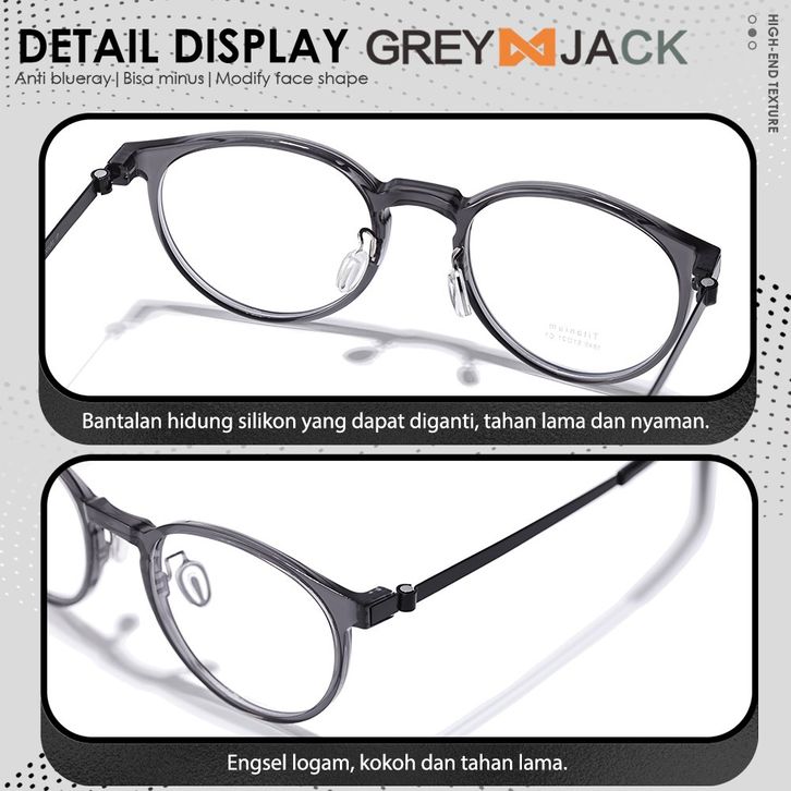 Grey Jack Kacamata Frame Titanium M0Del Oval Bulat Ringan Kokoh Bisa Minus Antiradiasi Blueray Bluecromic Lentur 1849
