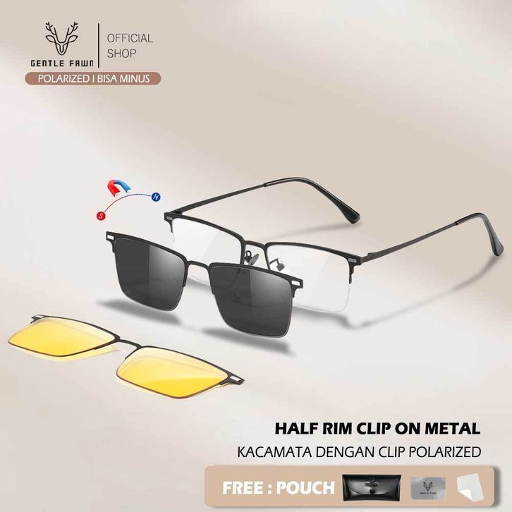 Gentle Fawn Kacamata Clip On Half Rimm 3in1 Free Lens Clip Polarized Fashion Pria Wanita Bisa Minus Bentuk Kotak Bahan