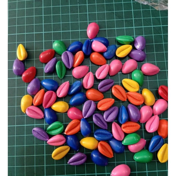 TERMURAH 1 kilo (-+1300 pcs ) kuwuk plastik warna biji congklak biji kerang plastik agohg