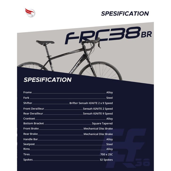 TERLARIS [GARANSI RESMI] SEPEDA ROADBIKE ELEMENT FRC 38 BR 700C FRAME ALLOY 2X9 SPEED