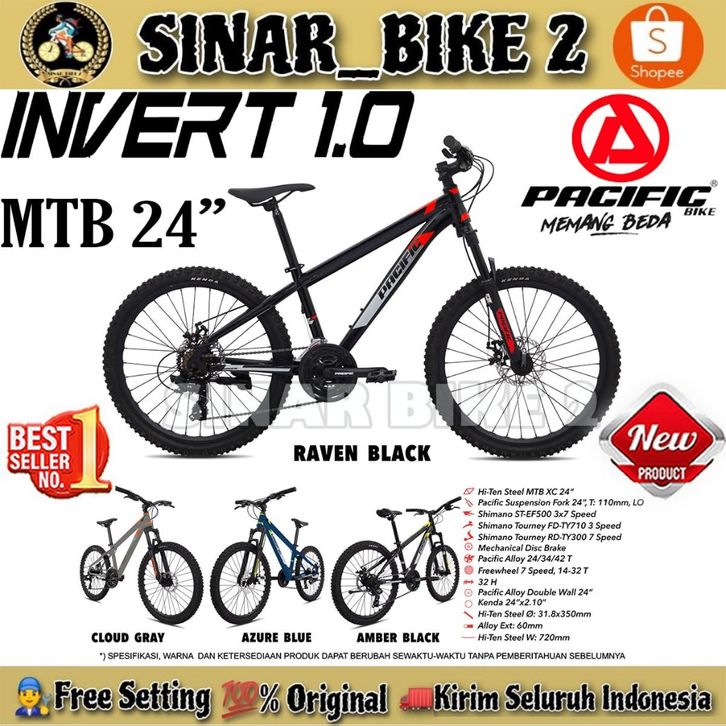 TERLARIS SEPEDA GUNUNG MTB PACIFIC INVERT 1.0 UKURAN 24 INCH 3X7 SPEED