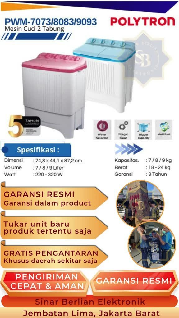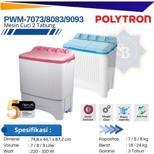 POLYTRON Mesin Cuci 2 Tabung Giant Series 7 KG - PWM7073 | 8KG – PWM8073 | 9KG - PWM9093