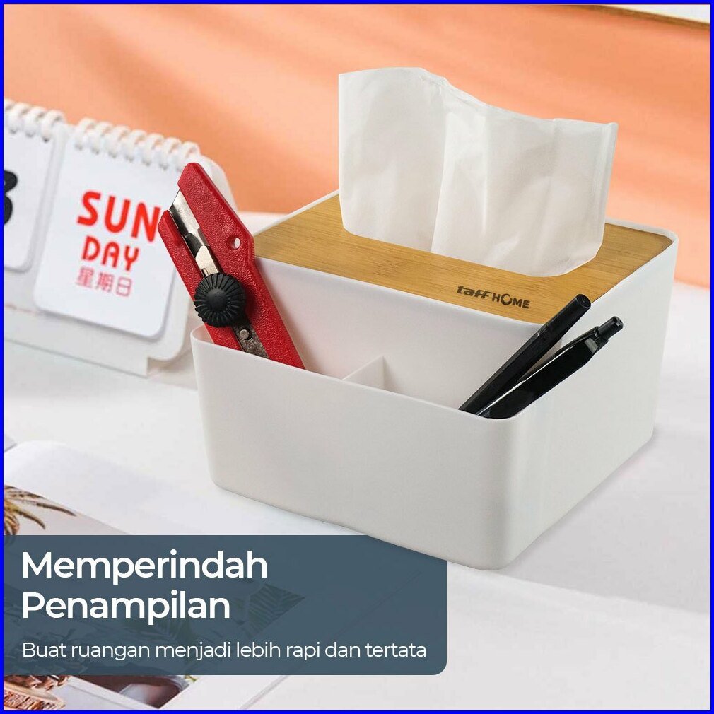 Taffhome Kotak Tisu Kayu Remot Multifungsi Organizer Box - Zj008