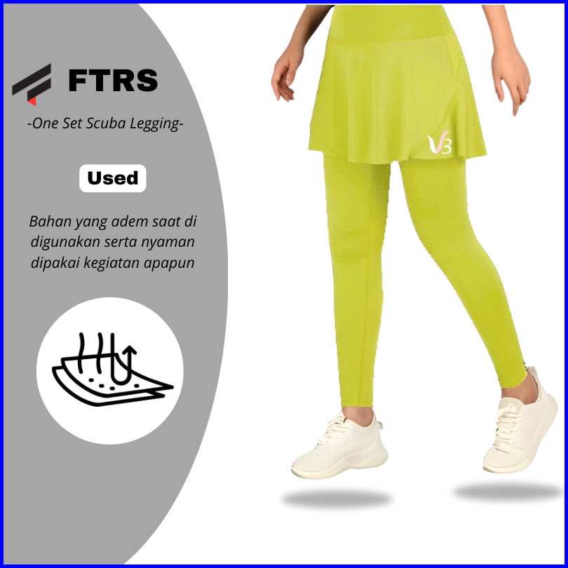 Fitras - One Set Legging Rok Olahraga Wanita Fitness Gym Senam Logo