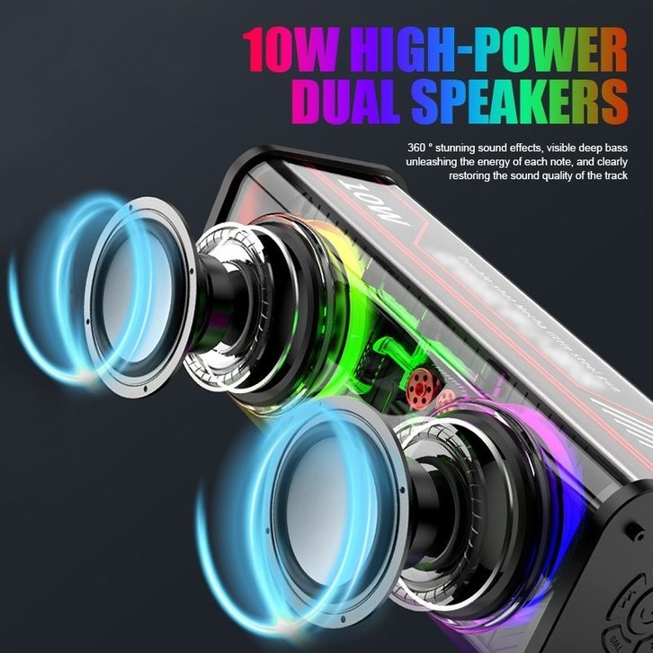 Cyberpunk Bluetooth Speaker 13W Double Subwoofer Music Speaker RGB LED Light Transparent Mecha Speaker V8 Speaker Bluet