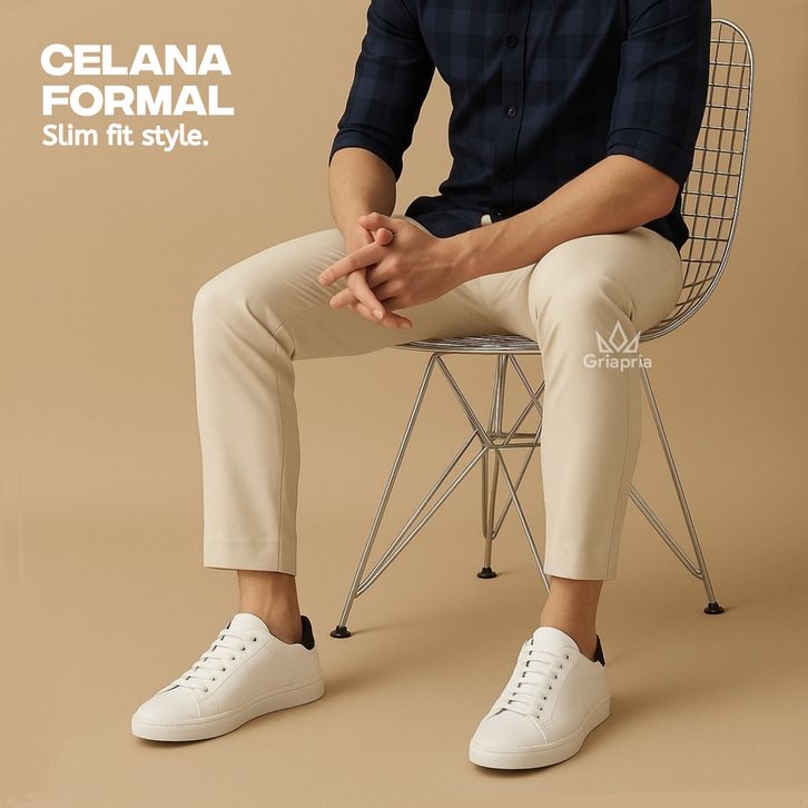 Celana Ankle Pants Bahan Formal Pria Slim Fit