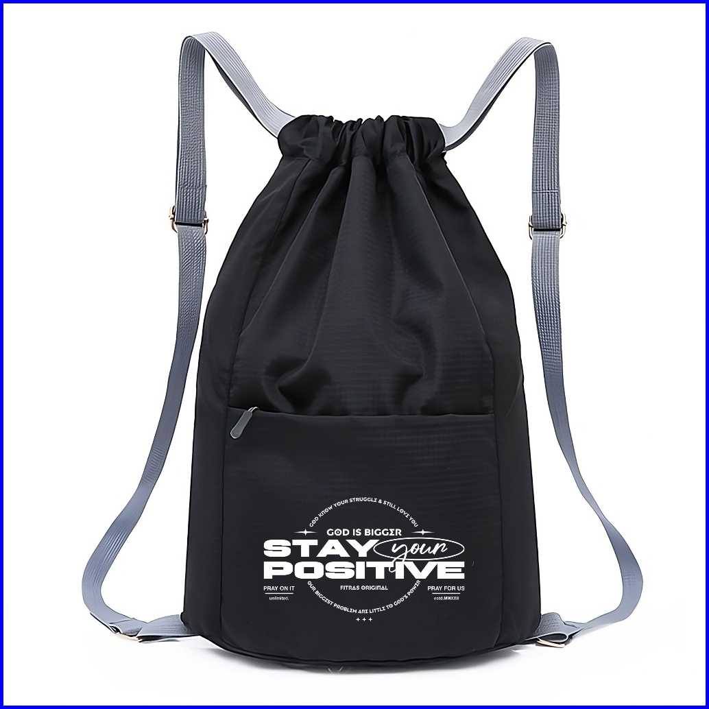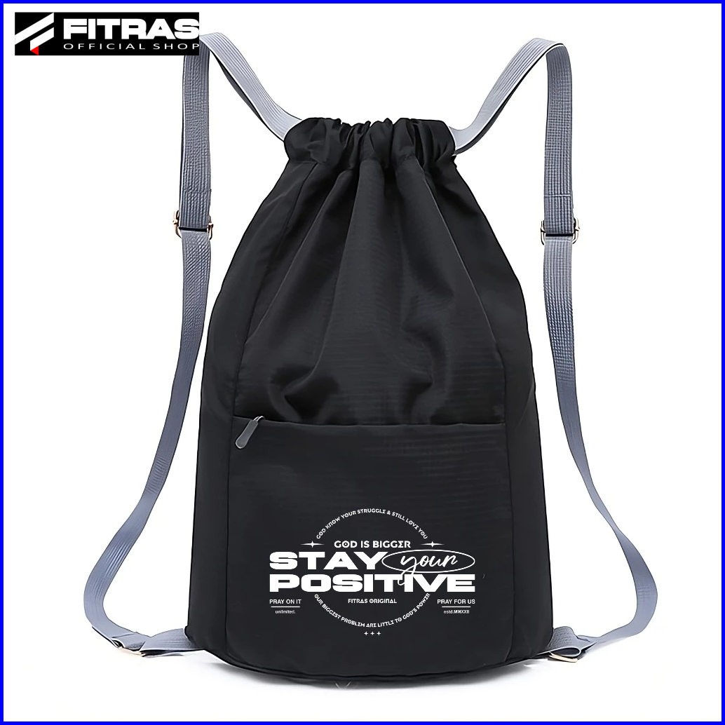 Fitras - Tas Serut Multifungsi Stay Positive String Bag Anti Air Tas Olahraga Pria Wanita Bahan Kanvas