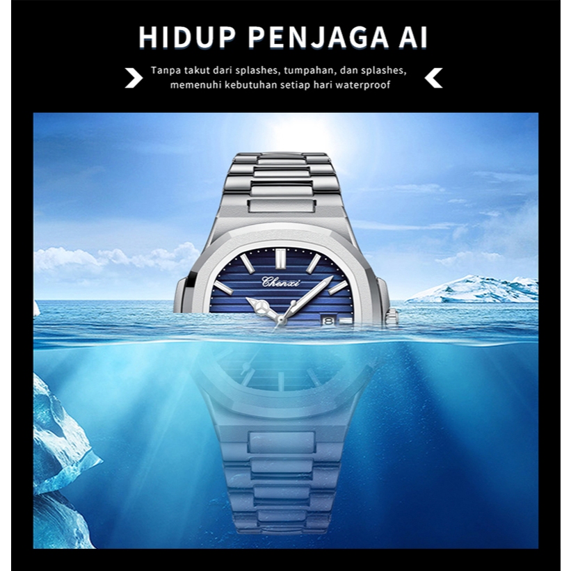 Jam Tangan Otomatis CHENXI 0022 Pria dewasa cowok terbaru Analog Stainless Steel Bercahaya Tanggal Stylish fashion kasua