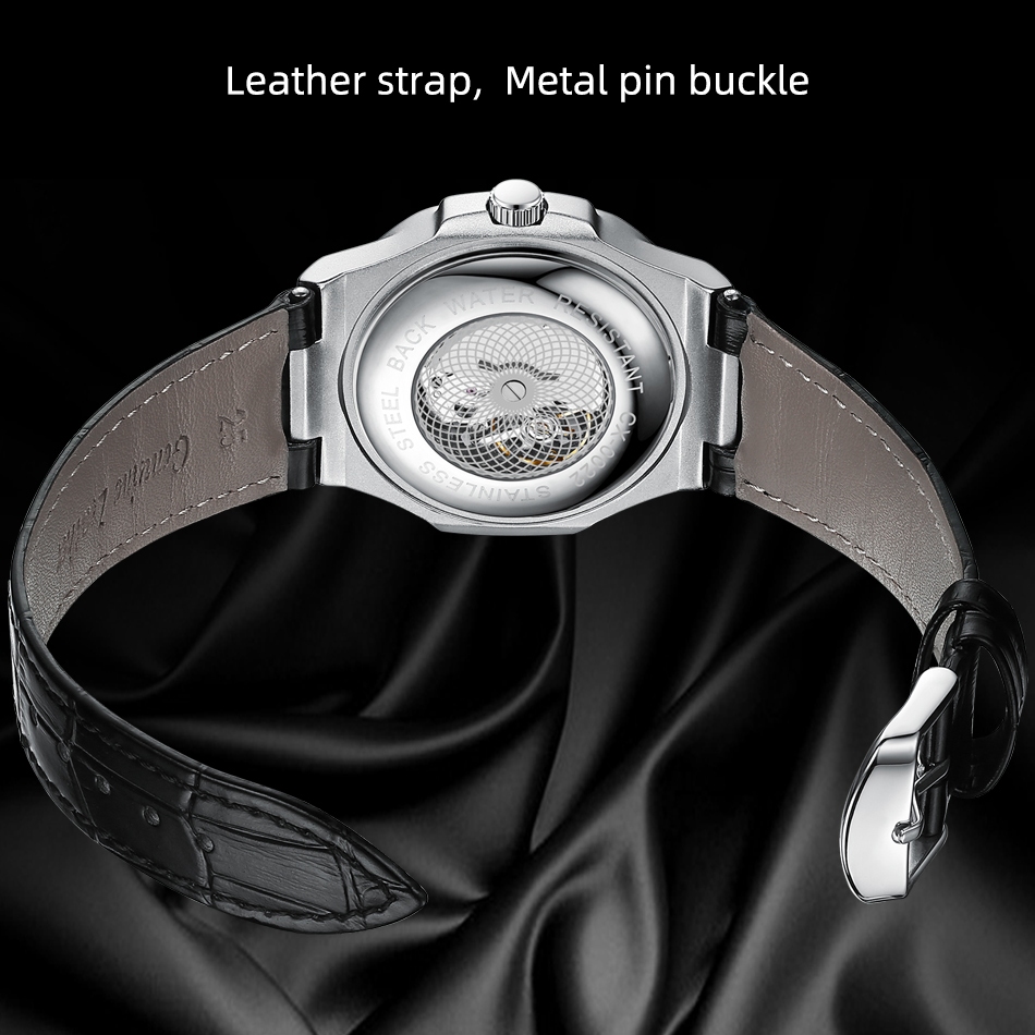 Jam Tangan Pria Luxury Otomatis Anti Air, Baja Tahan Karat, Tali Kulit, Fitur Kalender Keren Bisnis