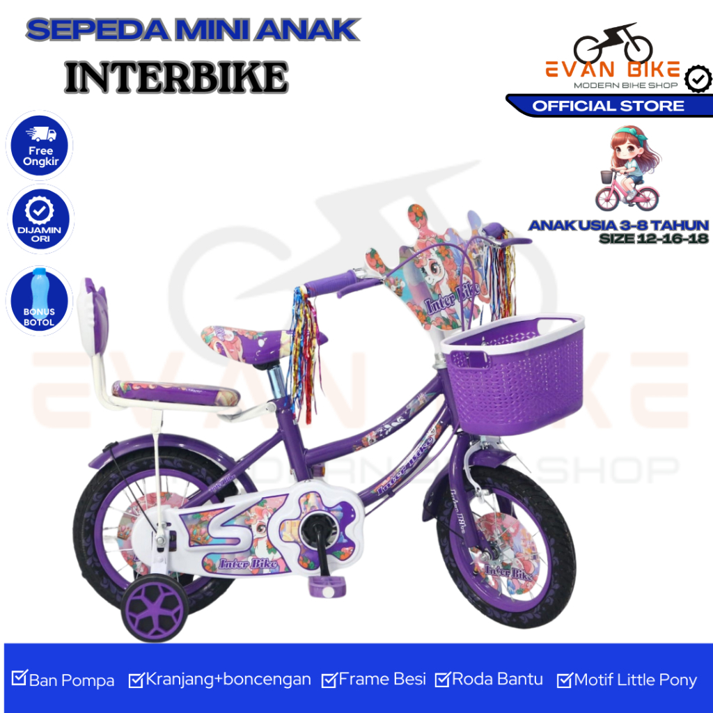 Sepeda anak mini INTERBIKE CITYBIKE Ban pompa POLOS untuk usia 4-8 tahun Bonus botol air